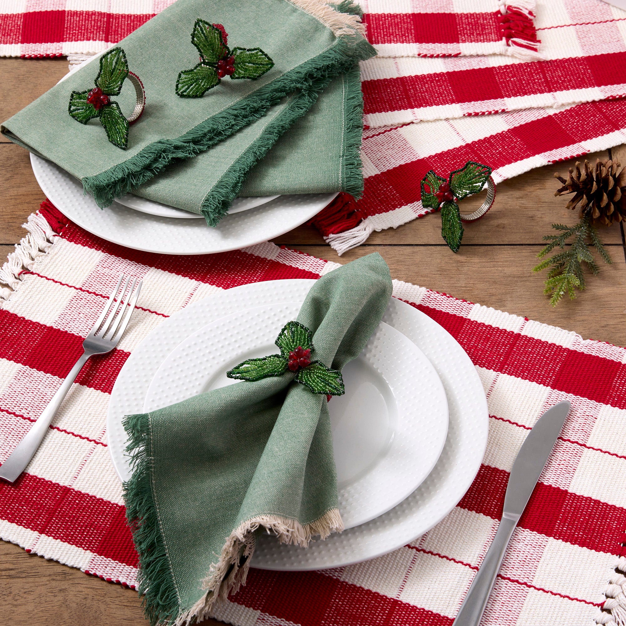 Add a festive flourish to your holiday table with the Design Imports Beaded Holly Napkin Ring. Featuring a classic holly leaf and berry motif crafted from delicate beads, this napkin ring brings sparkle, texture, and timeless holiday charm to each place setting. A beautiful way to dress up your linens, it’s perfect for Christmas dinners, seasonal celebrations, or winter gatherings.