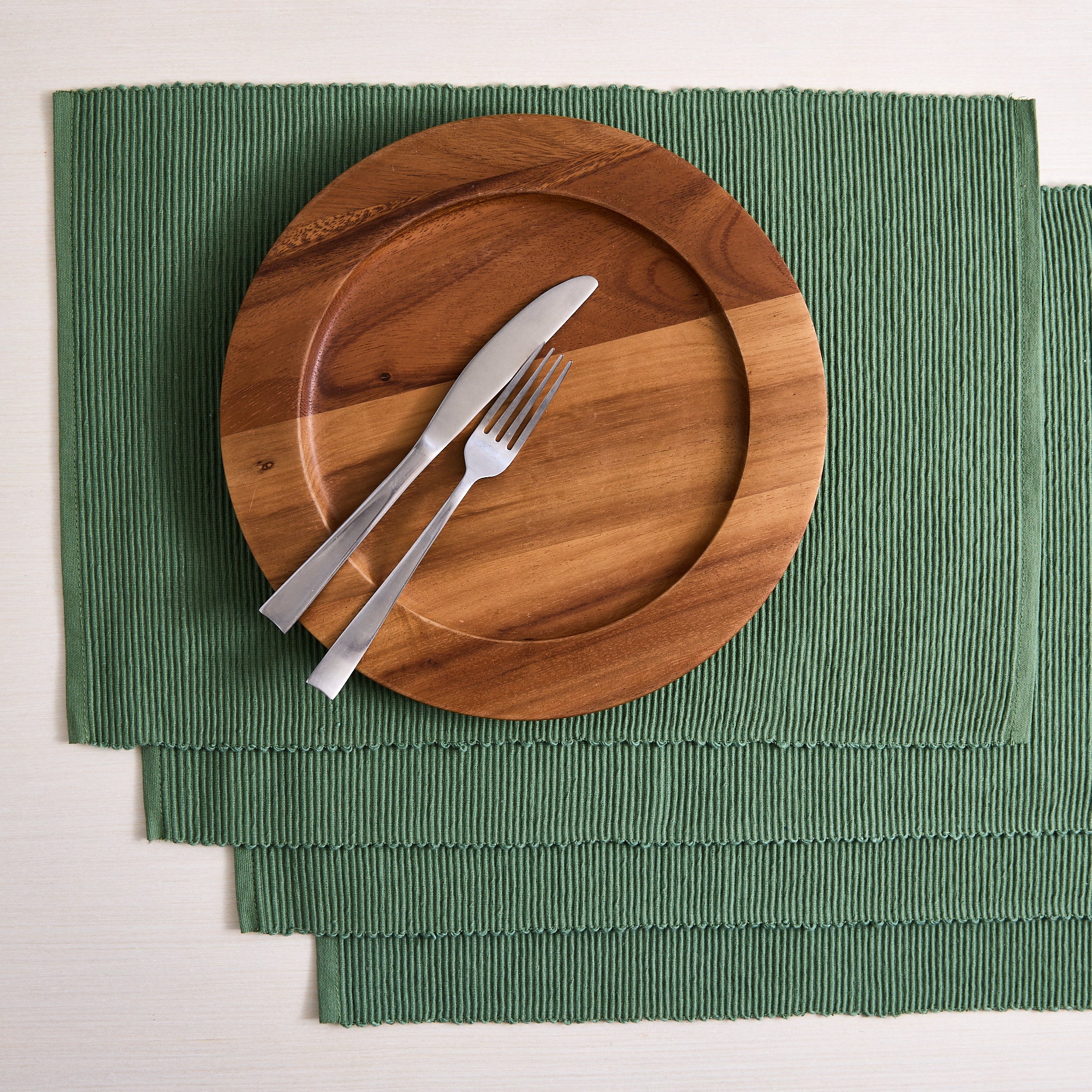 Elevate your everyday dining with the timeless simplicity of the Design Imports Solid Ribbed Placemat Set. Crafted for both style and function, these placemats feature a classic ribbed texture that adds depth and interest to your table while offering durable protection against heat, spills, and scratches. The solid color design makes them easy to mix and match with your favorite table linens, dinnerware, or seasonal décor. Whether you're hosting a casual family meal or setting the table for guests, this set of four provides a polished, pulled-together look with minimal effort. Easy to clean and made to last, they’re a versatile staple for any kitchen or dining space.