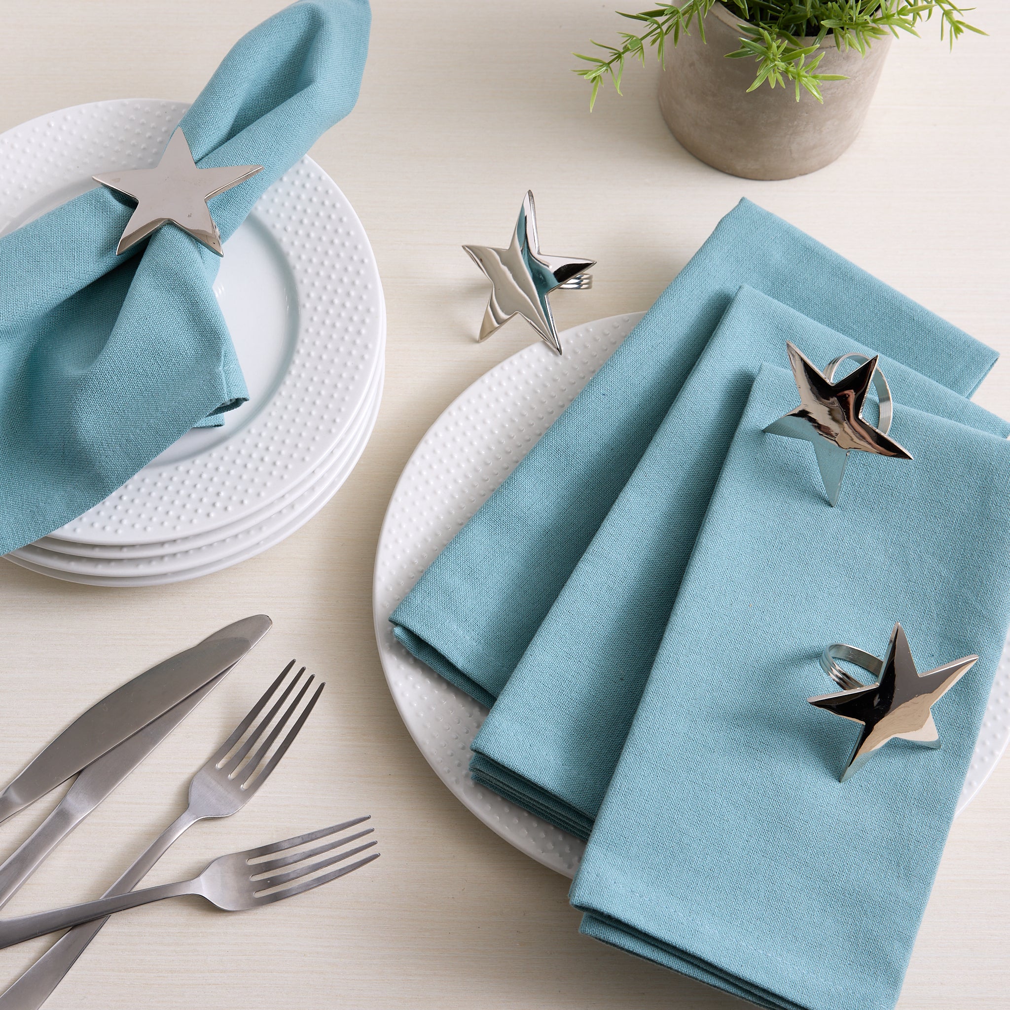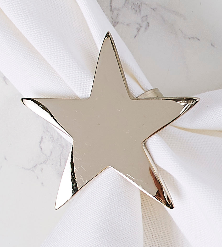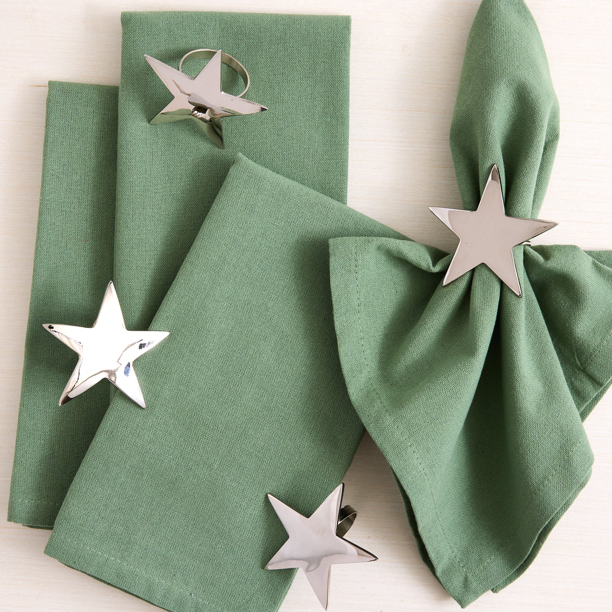 Add sparkle to your table with the Design Imports Silver Star Napkin Ring Set. Featuring a sleek, metallic finish and classic five-point star design, these napkin rings bring festive charm to any occasion—from holiday dinners to celebratory gatherings. The versatile polished silver pairs effortlessly with a range of table linens, making them a stylish staple for both seasonal and year-round entertaining.