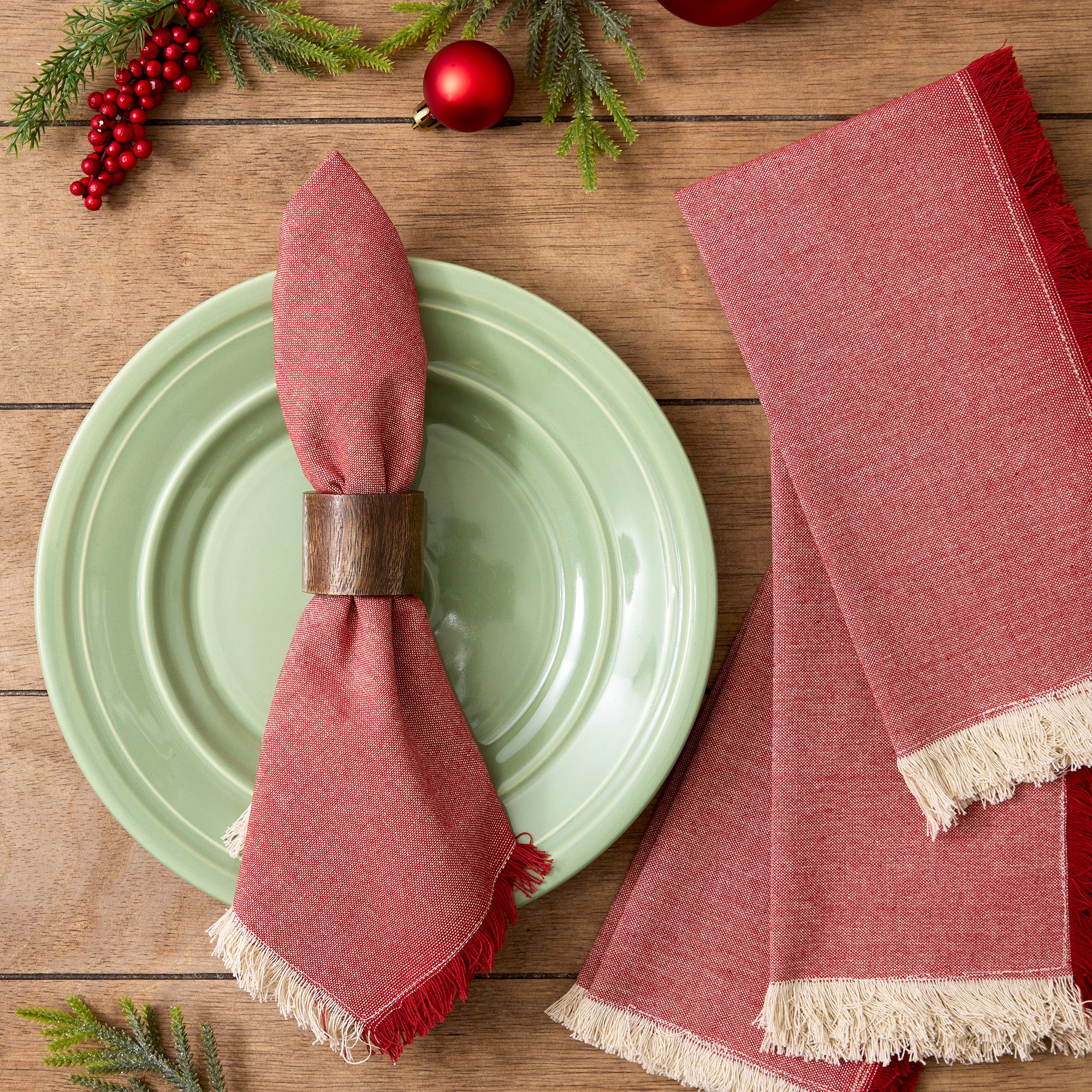 Add casual elegance to your everyday dining with the Design Imports Cotton Chambray Napkin Set. This set of four 20x20" cloth napkins is crafted from soft, durable cotton chambray and finished with decorative fringe for a relaxed, stylish touch. Perfect for daily meals, family gatherings, or casual entertaining, these reusable napkins offer an eco-friendly alternative to paper while elevating your table with texture and charm. Machine washable for easy care, they’re a practical staple you’ll reach for again and again.