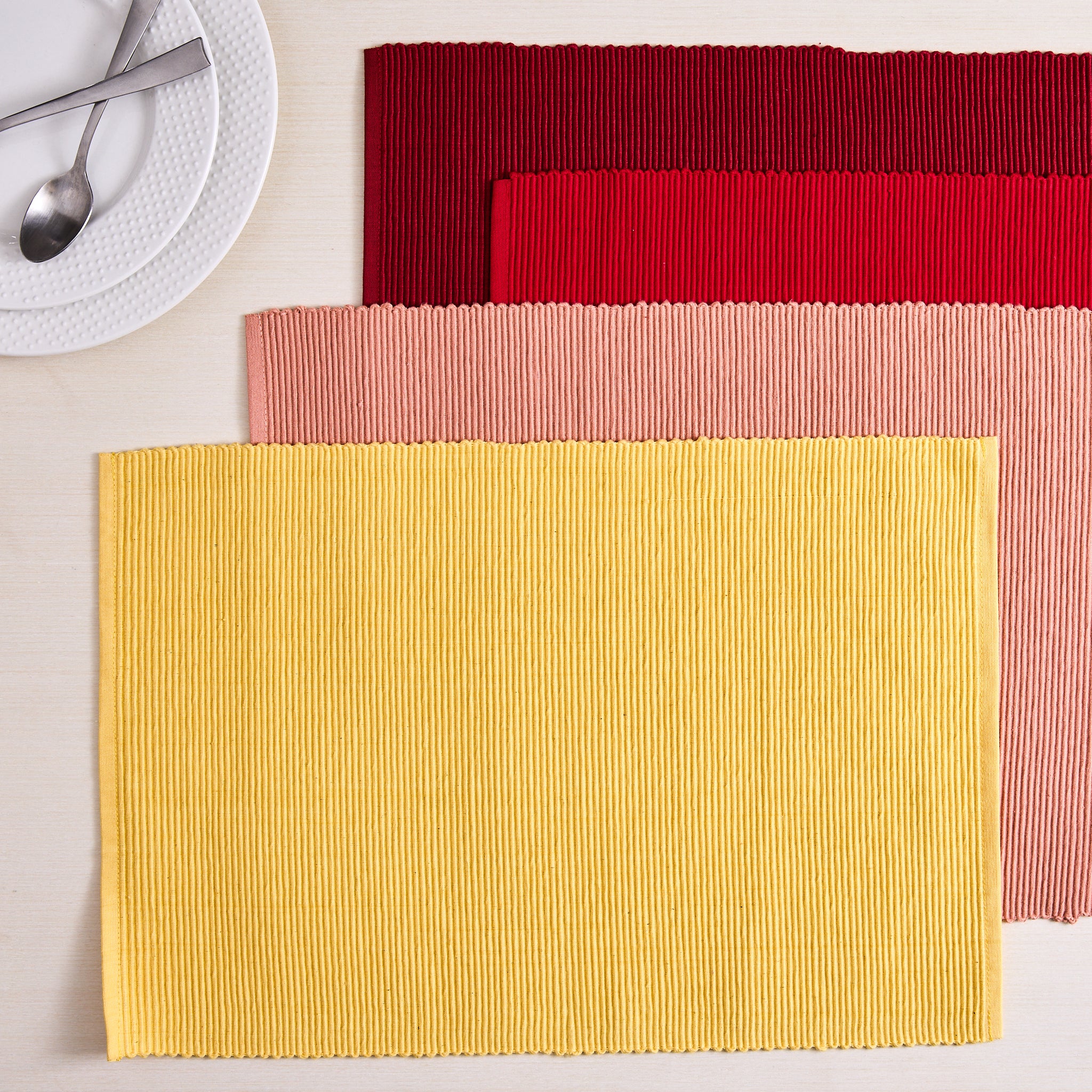 Elevate your everyday dining with the timeless simplicity of the Design Imports Solid Ribbed Placemat Set. Crafted for both style and function, these placemats feature a classic ribbed texture that adds depth and interest to your table while offering durable protection against heat, spills, and scratches. The solid color design makes them easy to mix and match with your favorite table linens, dinnerware, or seasonal décor. Whether you're hosting a casual family meal or setting the table for guests, this set of four provides a polished, pulled-together look with minimal effort. Easy to clean and made to last, they’re a versatile staple for any kitchen or dining space.