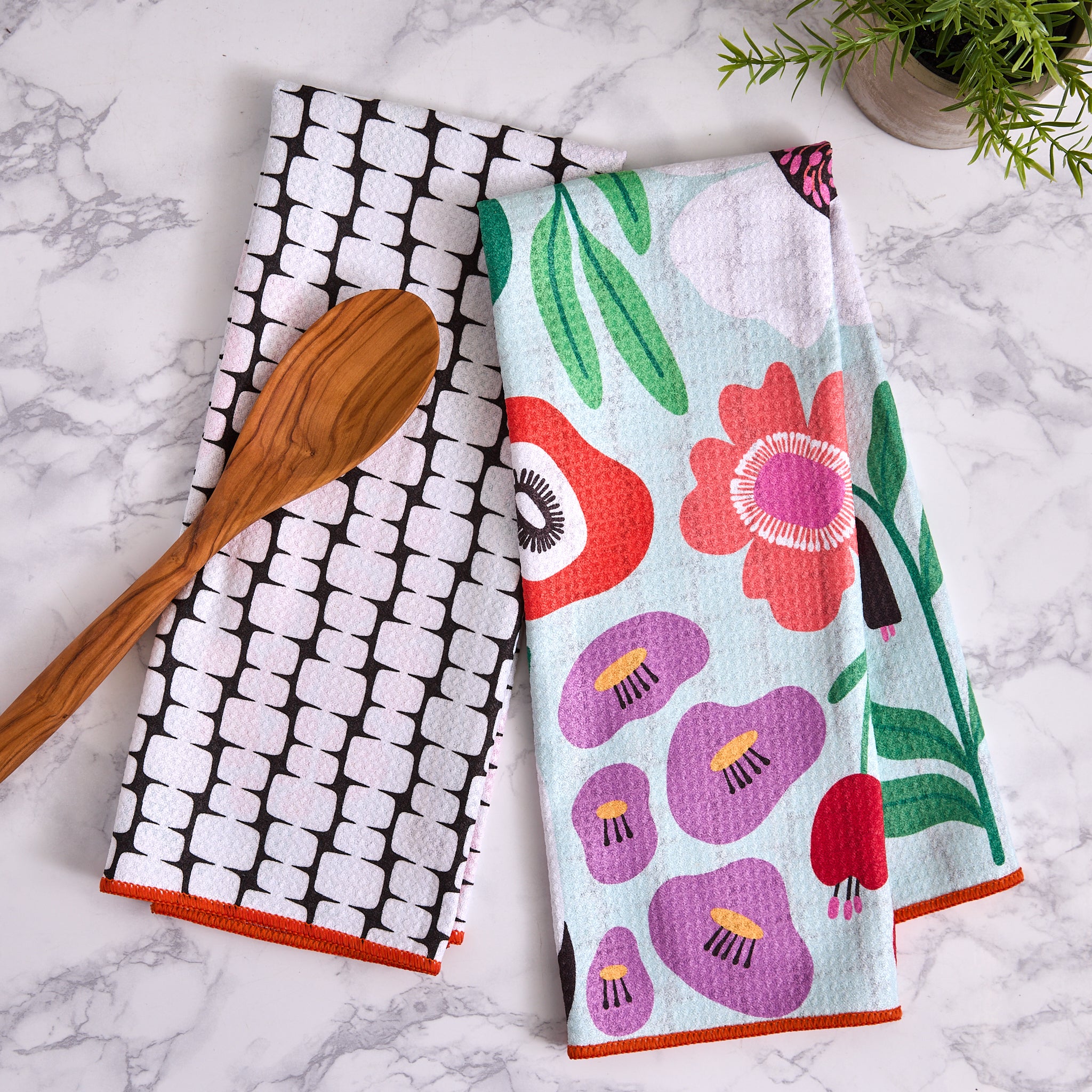 Enhance your kitchen with the Design Imports Printed Microfiber Dishtowel Set, a perfect combination of style and functionality. This set includes two ultra-absorbent microfiber dishtowels, designed to quickly soak up moisture while leaving surfaces spotless and streak-free. The soft, lint-free fabric makes them ideal for drying dishes, glassware, and countertops without scratching or residue. Featuring vibrant, fade-resistant printed designs, these towels add a stylish touch to any kitchen while offering fast-drying and durable performance. Perfect for everyday use, these microfiber dishtowels are lightweight yet highly absorbent, making them a practical and decorative addition to any home. Machine washable for easy care, they maintain their softness and effectiveness wash after wash.