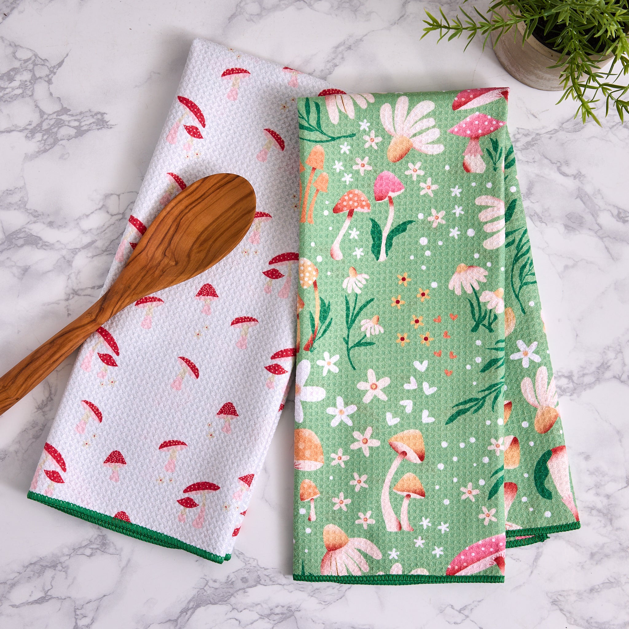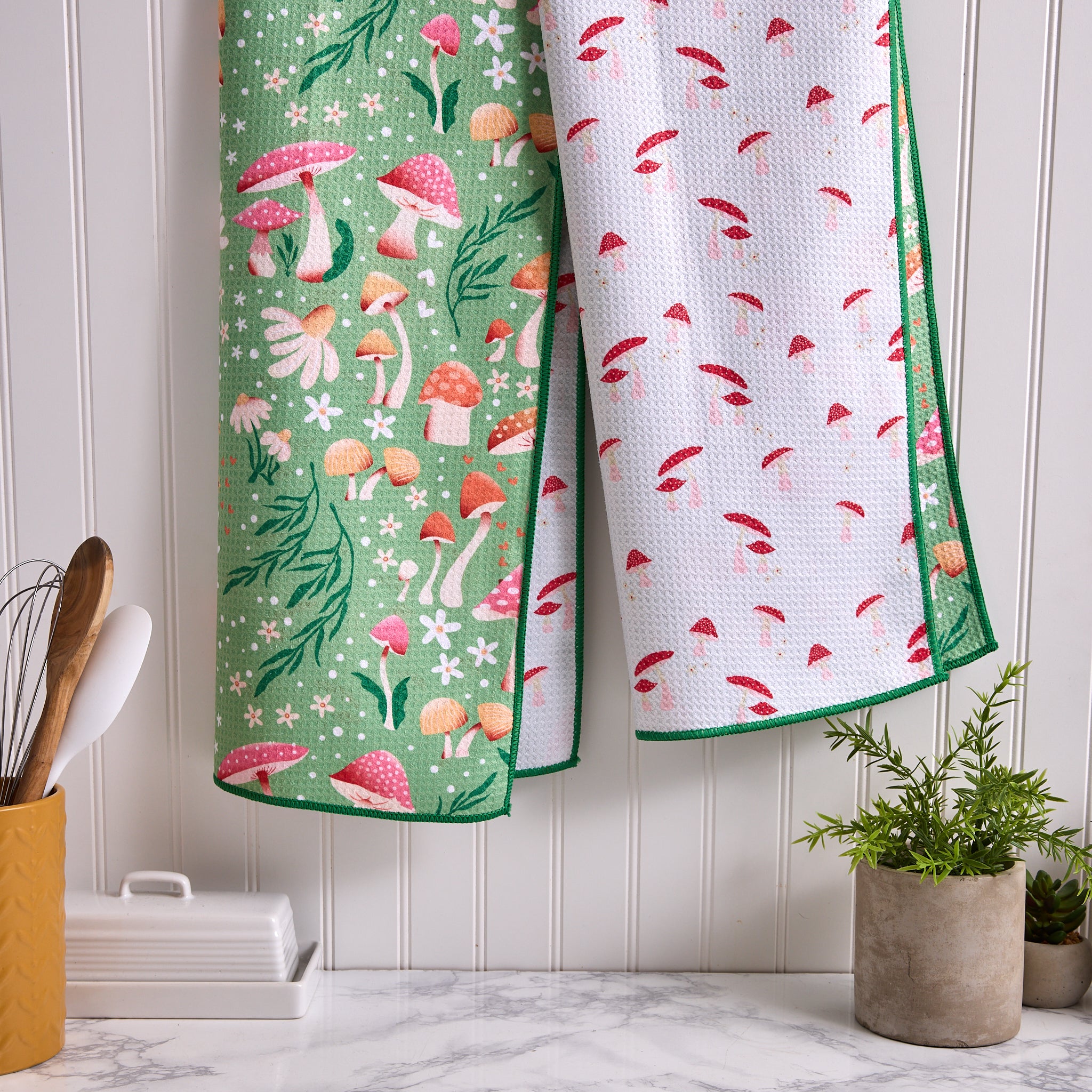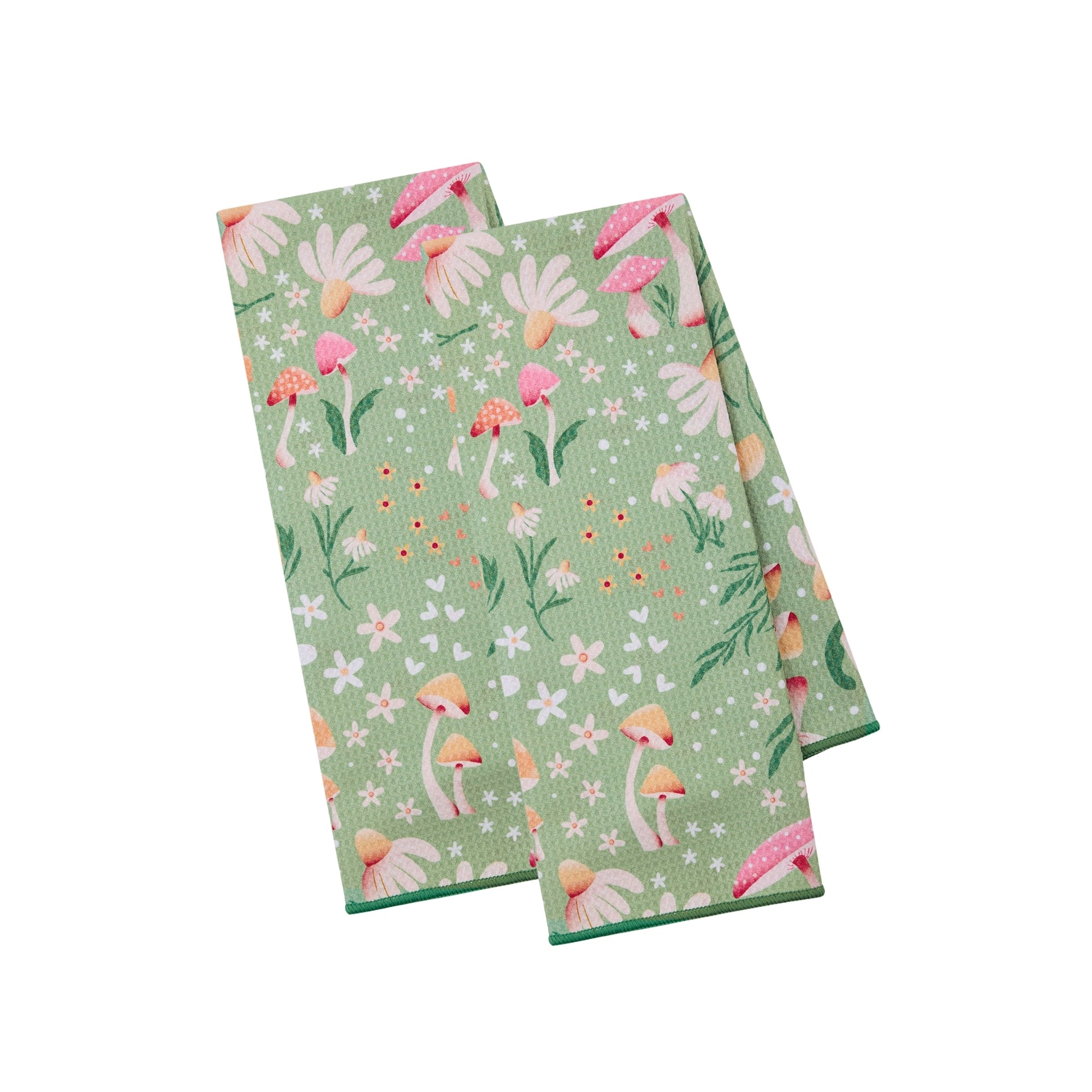 Mushroom Meadow Printed Microfiber Dishtowel Set of 2