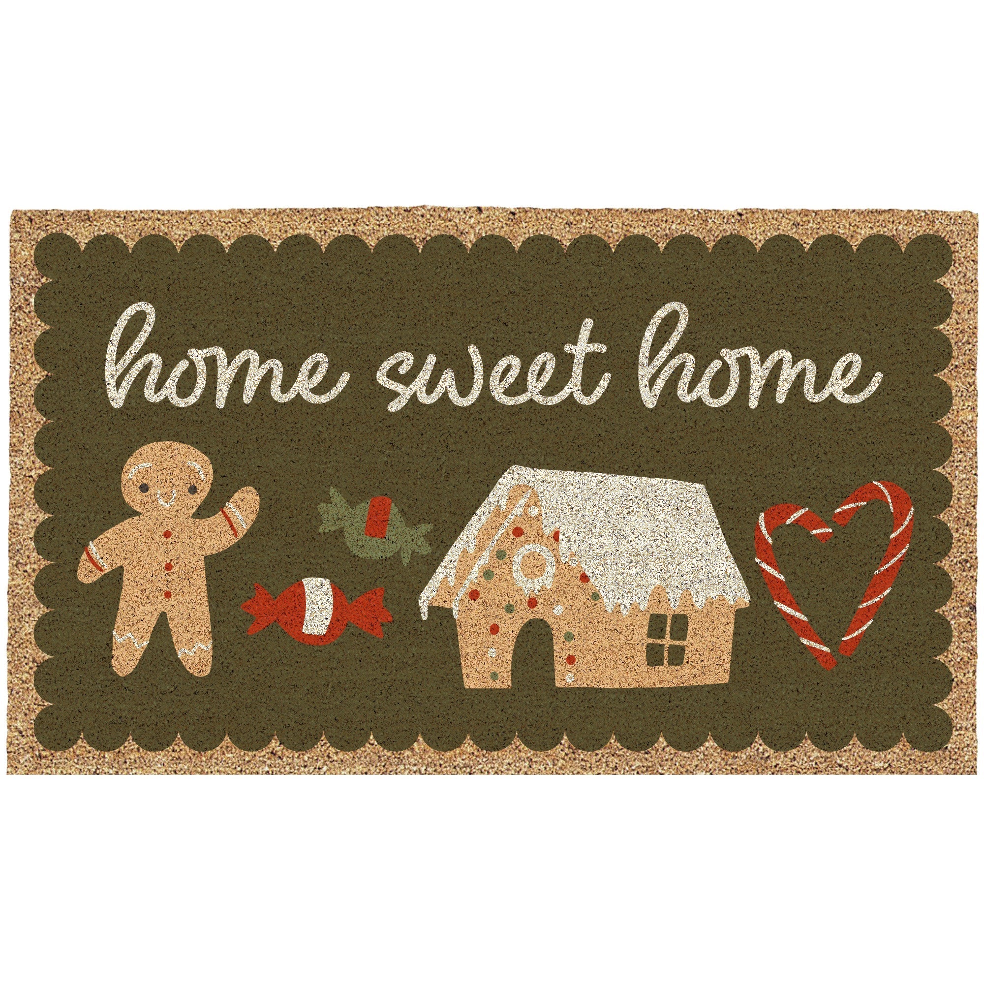 Greet the season—and your guests—in style with the Design Imports Home Sweet Home Doormat. Made from 100% natural coconut coir fiber, this durable mat features stiff bristles that effectively brush away dirt, leaves, and debris before it enters your home. The charming gingerbread character print adds a cozy, seasonal touch to your entryway, making it perfect for entertaining, everyday use, or simply celebrating the holiday ahead. Ideal for front porches, patios, mudrooms, and more, this doormat blends functionality with festive flair to keep your home clean and inviting all season long.