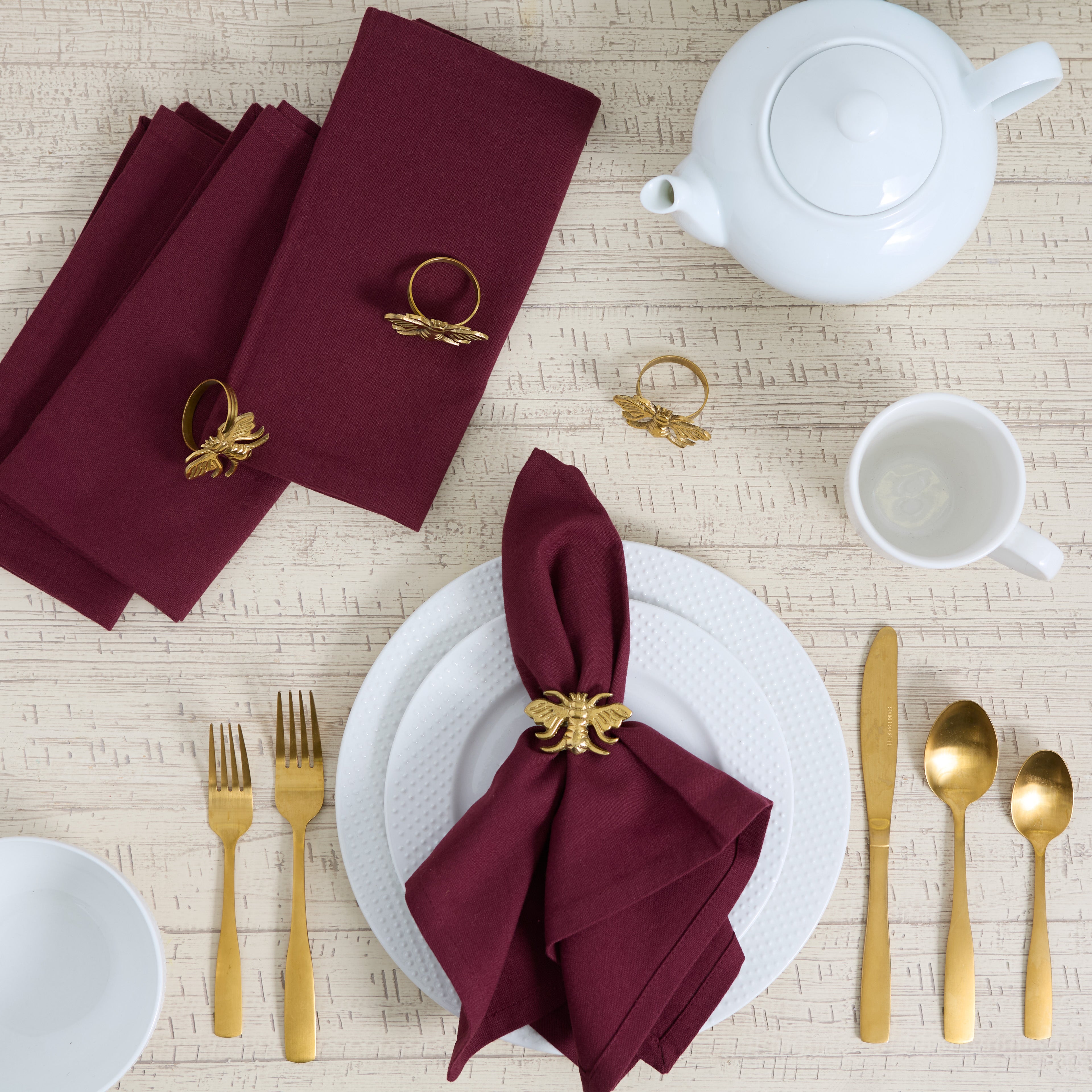 - The charming gold bee design make these napkin rings whimsical yet elegant adding an eye-catching touch to any table setting.