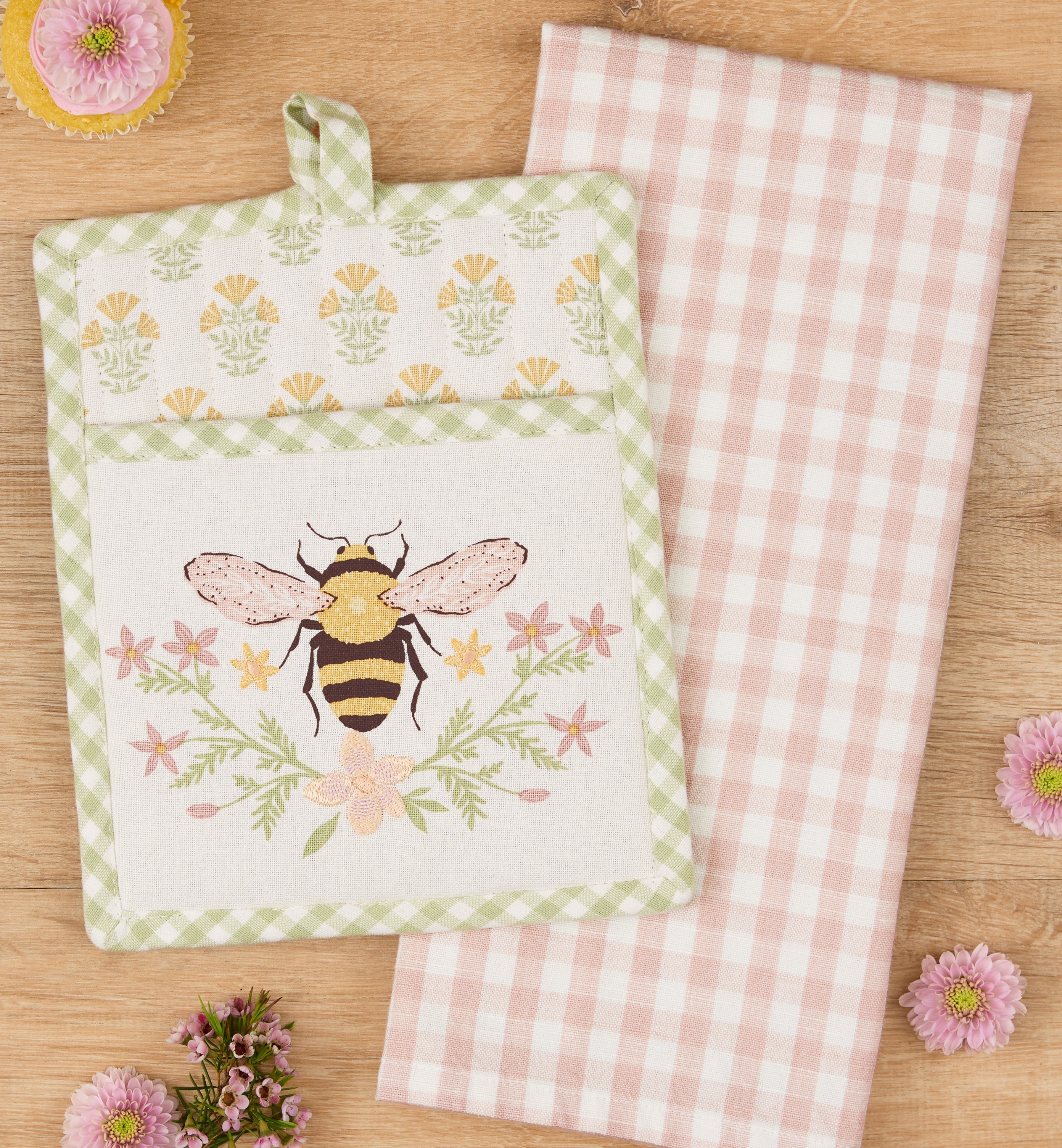 - Potholder: 8 x 9-inches | Dishtowel: 18 x 28-inches