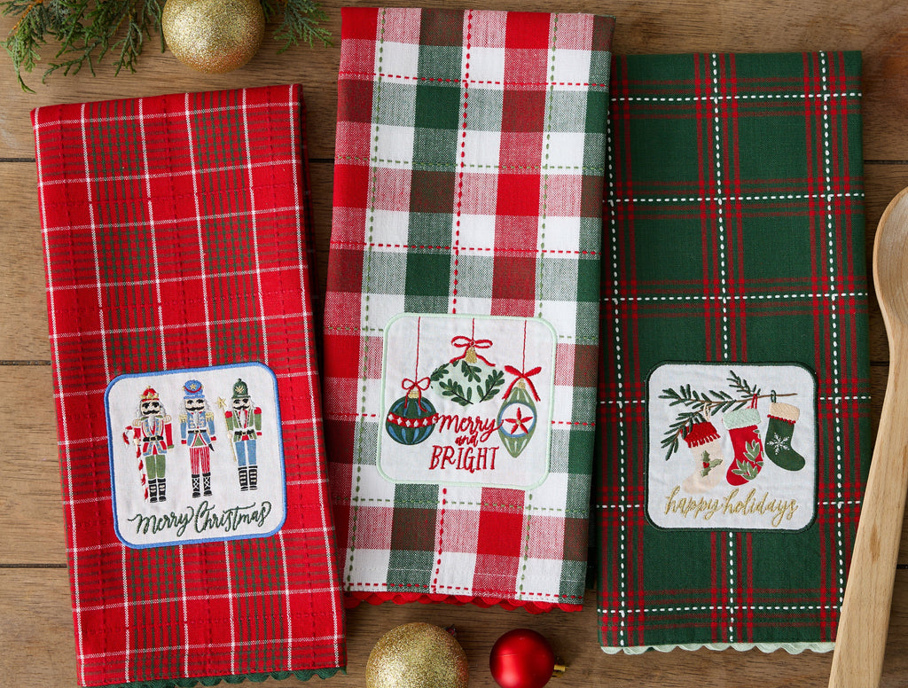 Merry Nutcrackers Embellished Dishtowel