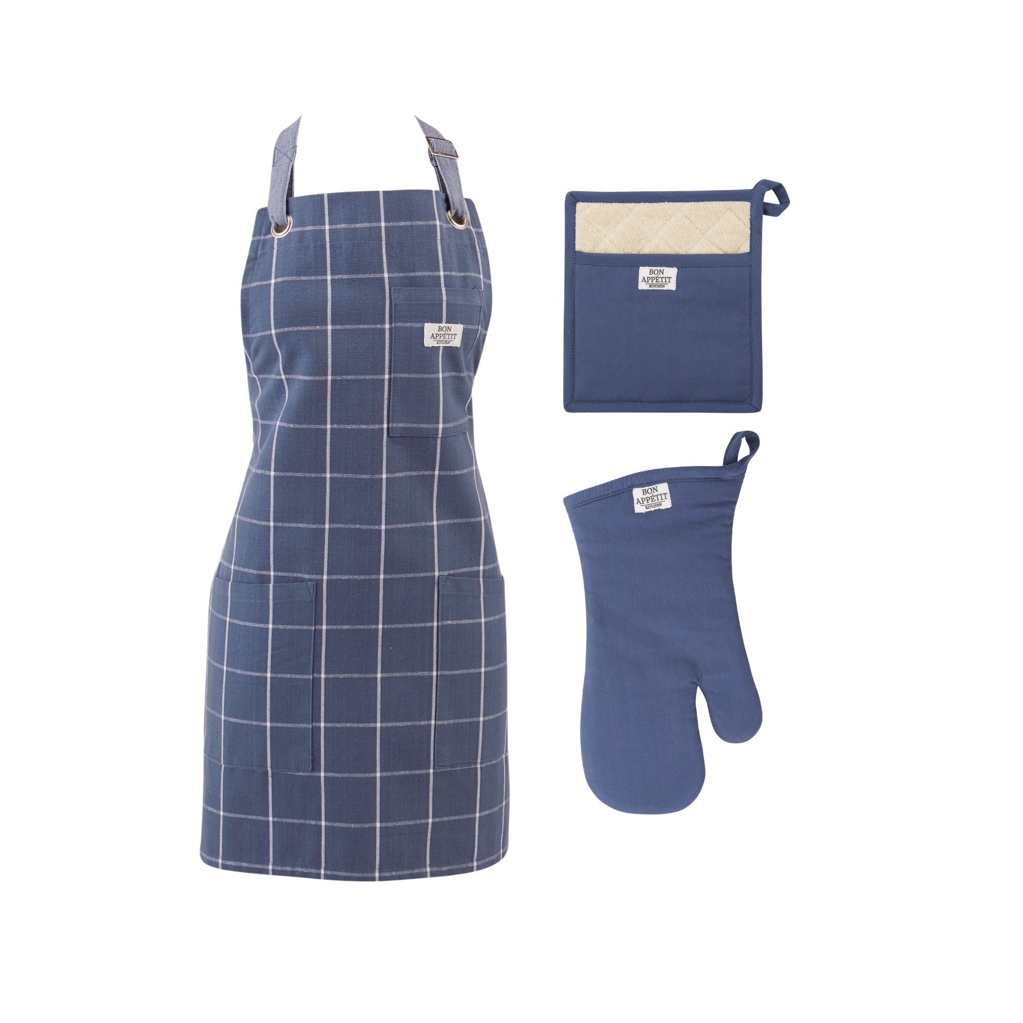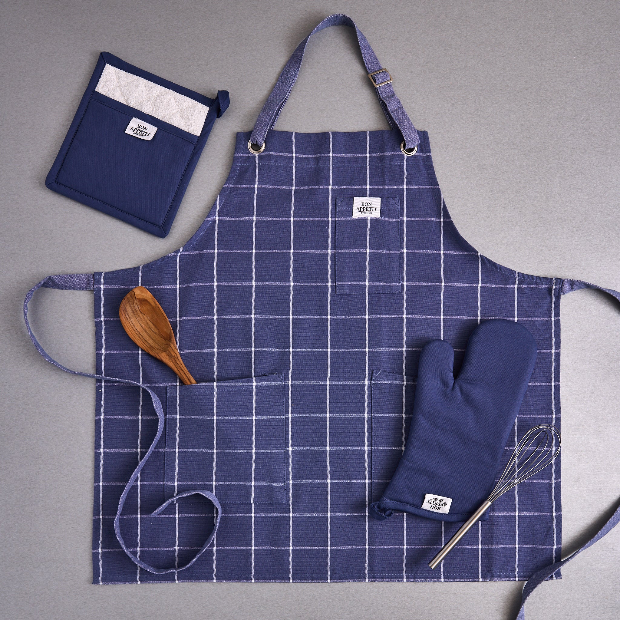 Bring timeless charm and everyday functionality to your kitchen with Design Imports Apron, Oven Mitt & Potholder Set. This coordinated 3-piece set includes a windowpane apron, a heat-resistant chino oven mitt, and a matching chino potholder. Designed for comfort and performance, the apron features an adjustable neck strap and waist ties for a custom fit, while the oven mitt and potholder provide reliable protection when handling hot cookware and bakeware. Perfect for cooking, baking, or hosting, this set combines style and practicality, making it a lovely addition to any kitchen or a thoughtful gift for the home chef.