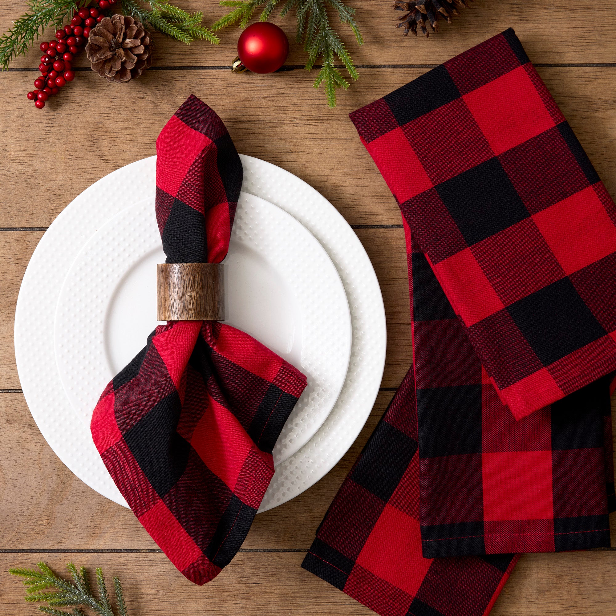 Add festive charm to your holiday table with the Design Imports Buffalo Check Napkin Set. This set of four 20x20" cotton napkins features a classic red and green plaid, perfect for Christmas dinners, seasonal gatherings, or winter brunches. Durable yet soft, each napkin is finished with mitered corners and a 1/2-inch hem for a polished look that stands up to repeated use. Machine washable and reusable, they’re a sustainable alternative to disposable napkins—ideal for adding both function and cheer to your holiday entertaining.