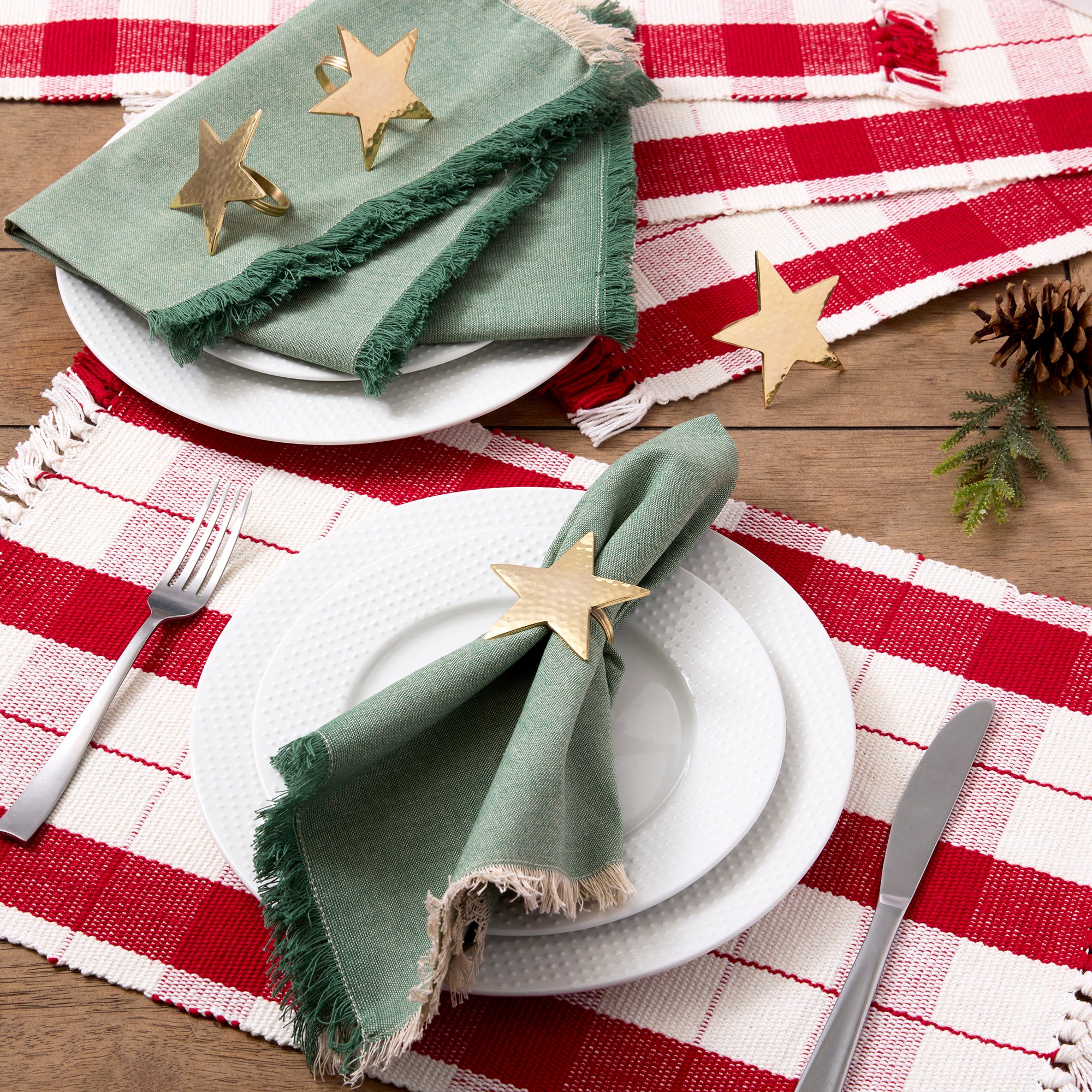 Add a festive shimmer to your holiday table with the Design Imports Gold Star Napkin Ring Set. Featuring a modern, understated holiday tree design in a soft gold finish, this set brings warmth, elegance, and a seasonal touch to any place setting. Perfect for formal dinners or casual gatherings, these reusable napkin rings help keep napkins neatly styled while adding holiday cheer to your décor.