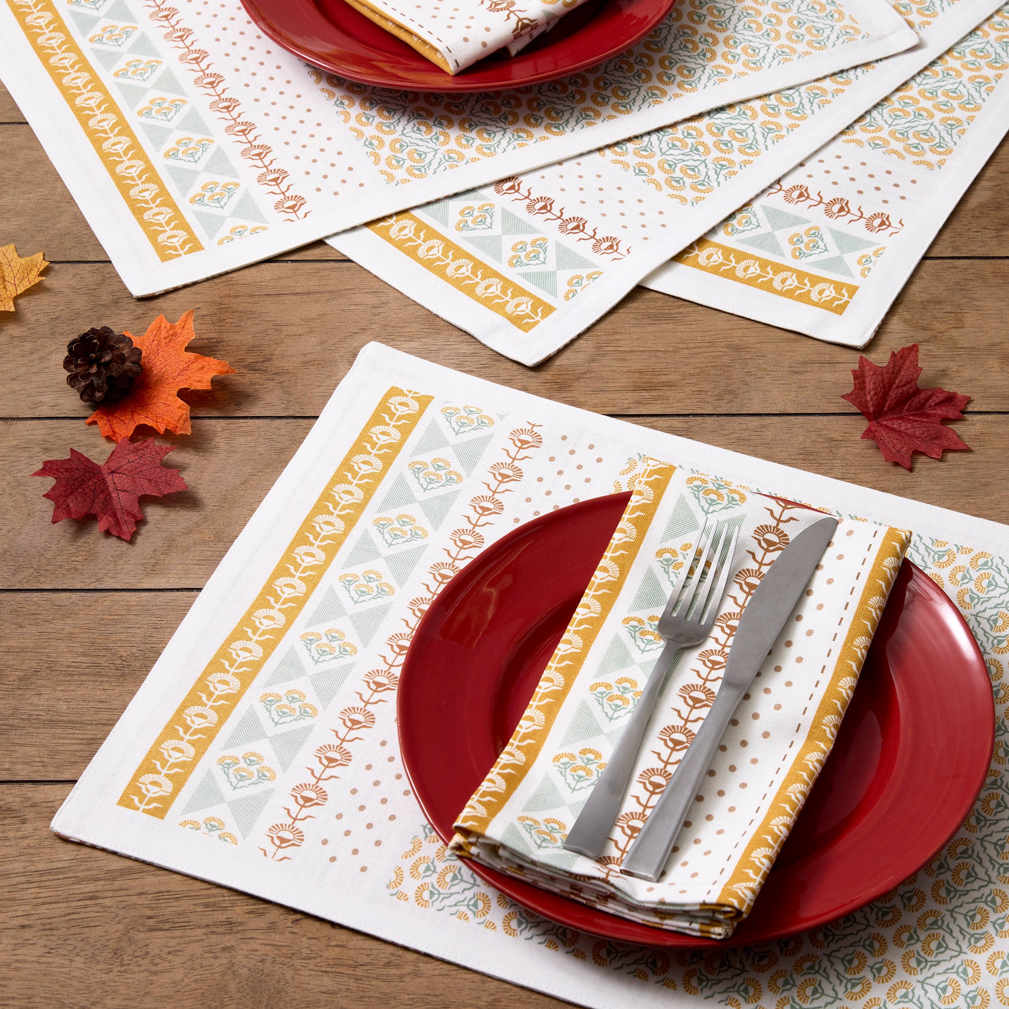 - Set includes 4 Placemats, each measure 13x19-inches