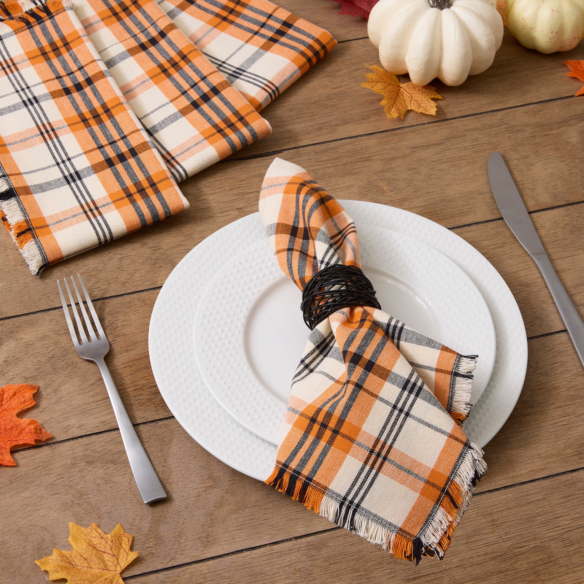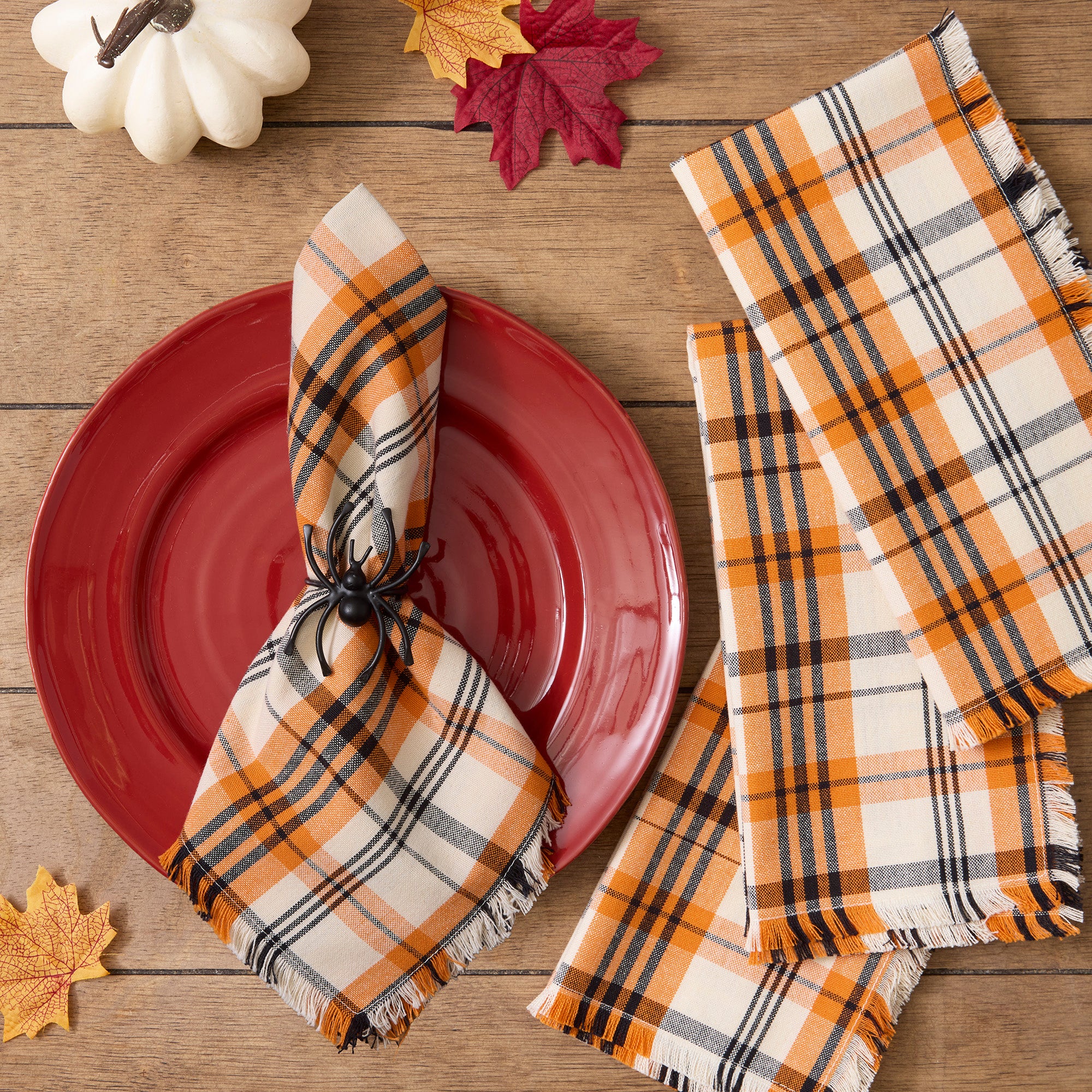 Add a festive touch to your Halloween table with the Design Imports Trick or Treat Plaid Halloween Napkin Set. This set of four 20x20" cotton napkins features a classic orange and black plaid pattern, perfect for adding seasonal charm to your dining experience. Crafted from soft, durable cotton, these reusable napkins offer an eco-friendly alternative to disposable paper products. Ideal for Halloween dinners, themed parties, or autumn gatherings, they bring both style and sustainability to your tablescape.