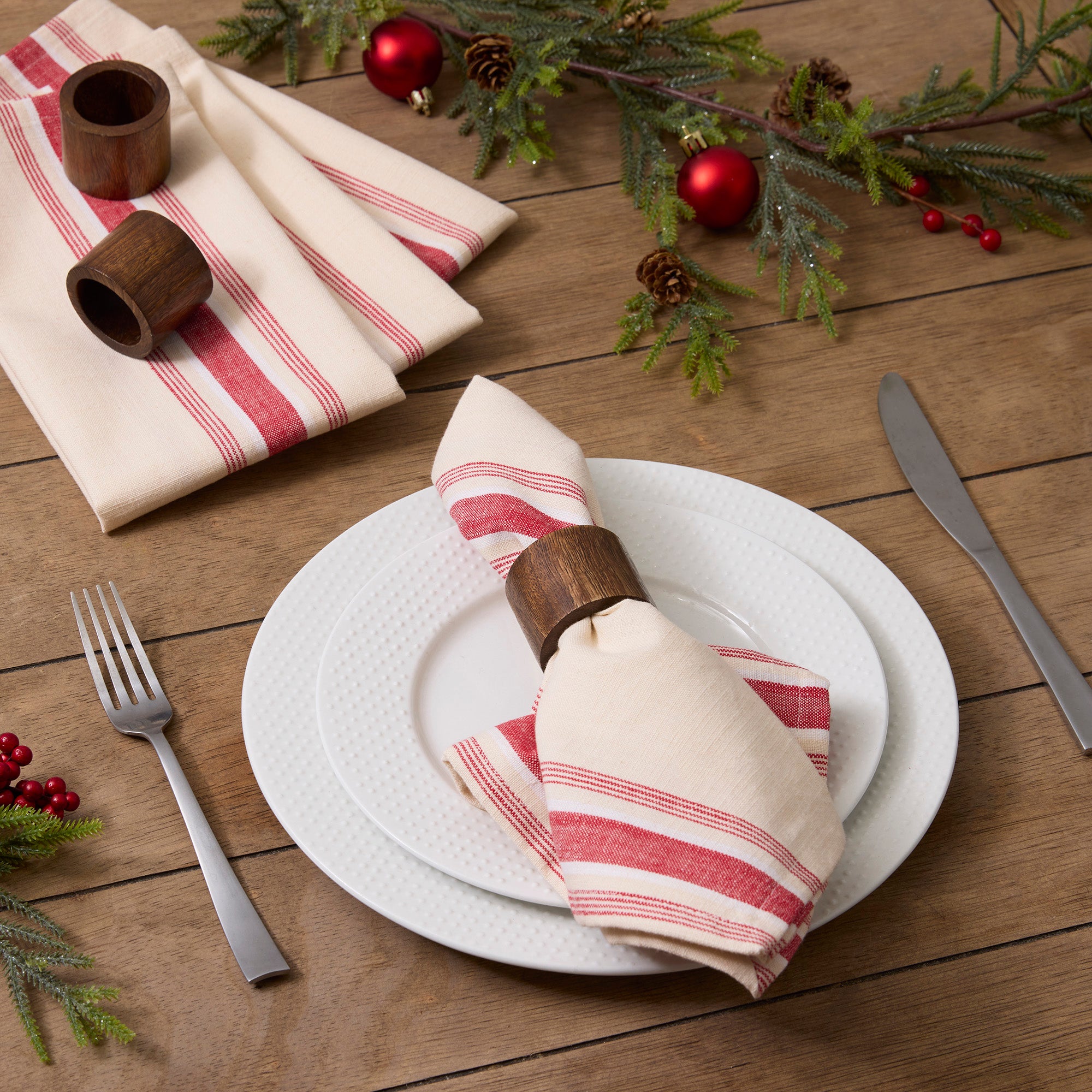 Elevate your holiday dining experience with the Design Imports Red Stripe Holiday Napkin Set. This set of four 20x20" cloth napkins features a classic red stripe pattern that adds warmth, color, and timeless charm to your table décor. Perfect for Christmas dinners, holiday brunches, and winter gatherings, these napkins are both stylish and functional—helping to reduce waste while enhancing your place settings with a coordinated, festive touch. Reusable and easy to care for, they’re a practical upgrade you'll reach for year after year.