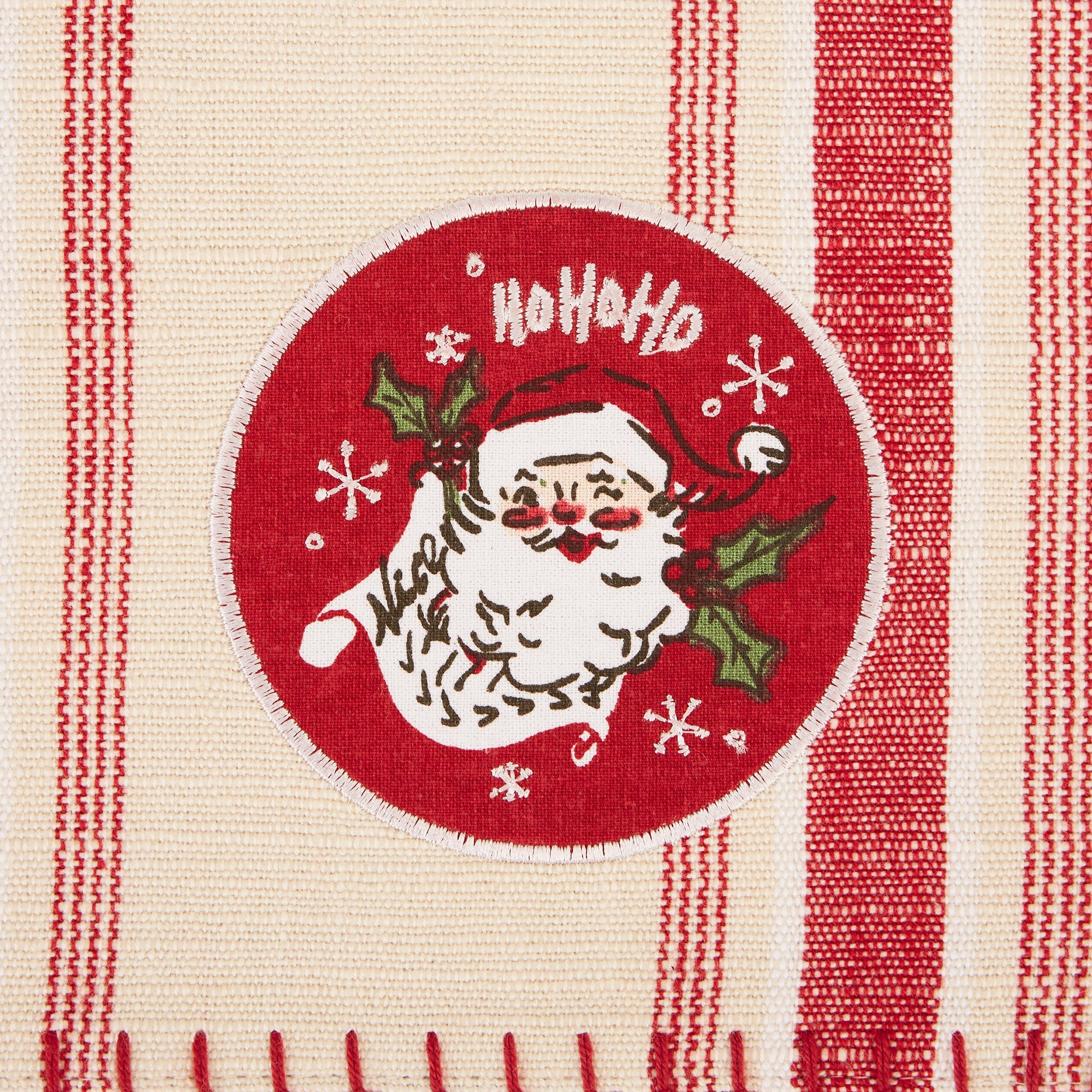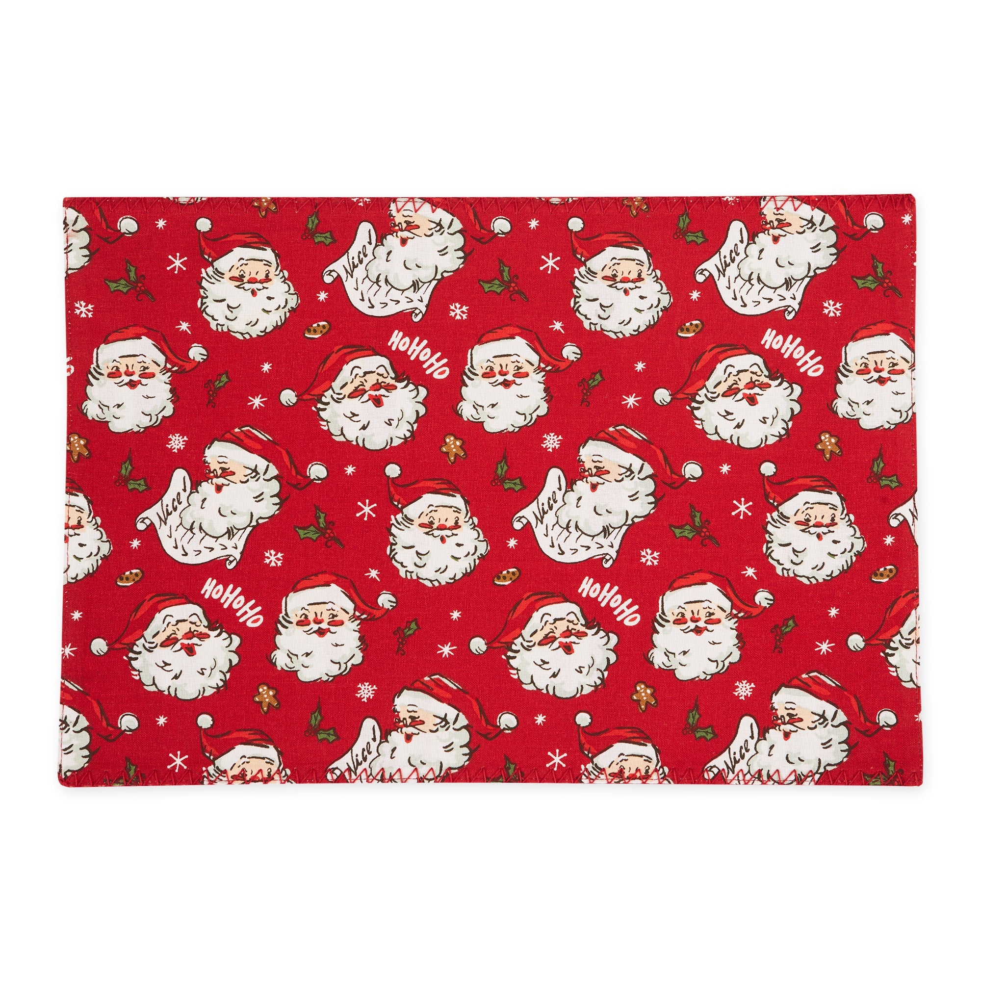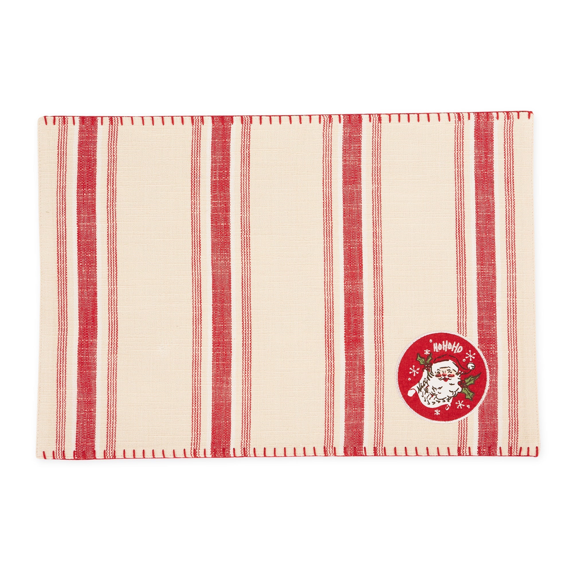 Part of the Holly Jolly Cookie Co. Collection, this reversible Jolly Santa! Embellished Placemat is fused, lined and embellished with an embroidered applique patch and finished with a whipstitch trim at the top and bottom edges.