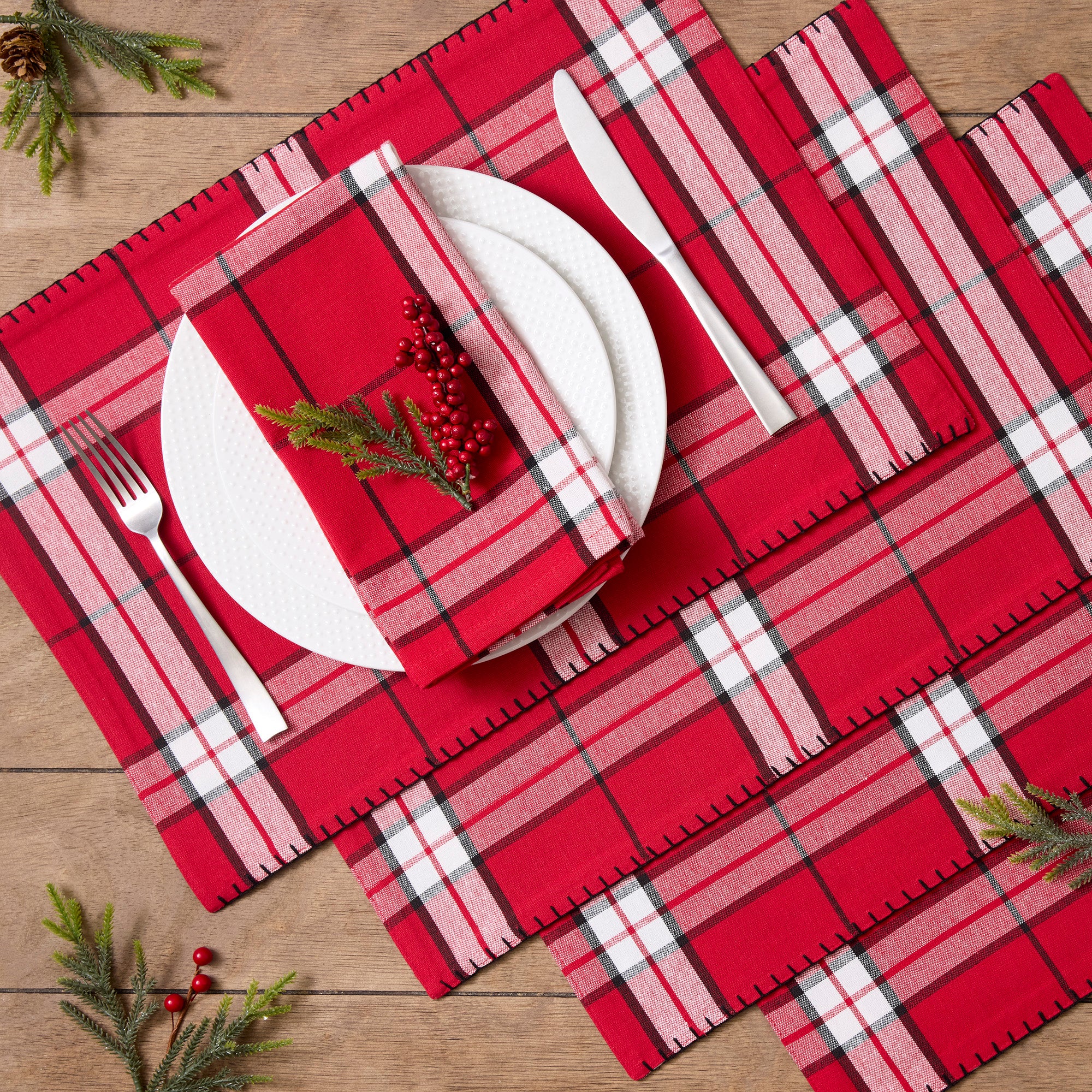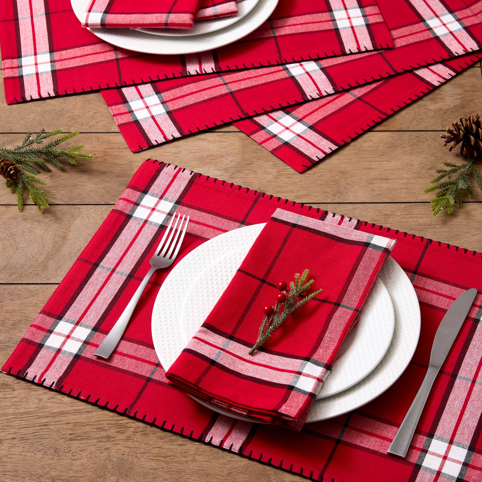 Add both function and flair to your table this holiday season with Design Imports beautifully crafted Sleigh Bells Plaid Embellished Placemat Set. Thoughtfully designed, the fused and lined placemats offer reliable protection from spills, stains, and heat, helping preserve your table’s surface while creating a polished backdrop for meals. Decorative whipstitch detailing along the top and bottom adds a charming finish that transitions seamlessly from everyday use to festive gatherings. Whether you're hosting guests or enjoying a quiet dinner at home, this piece offers a simple way to elevate your table with style and practicality.