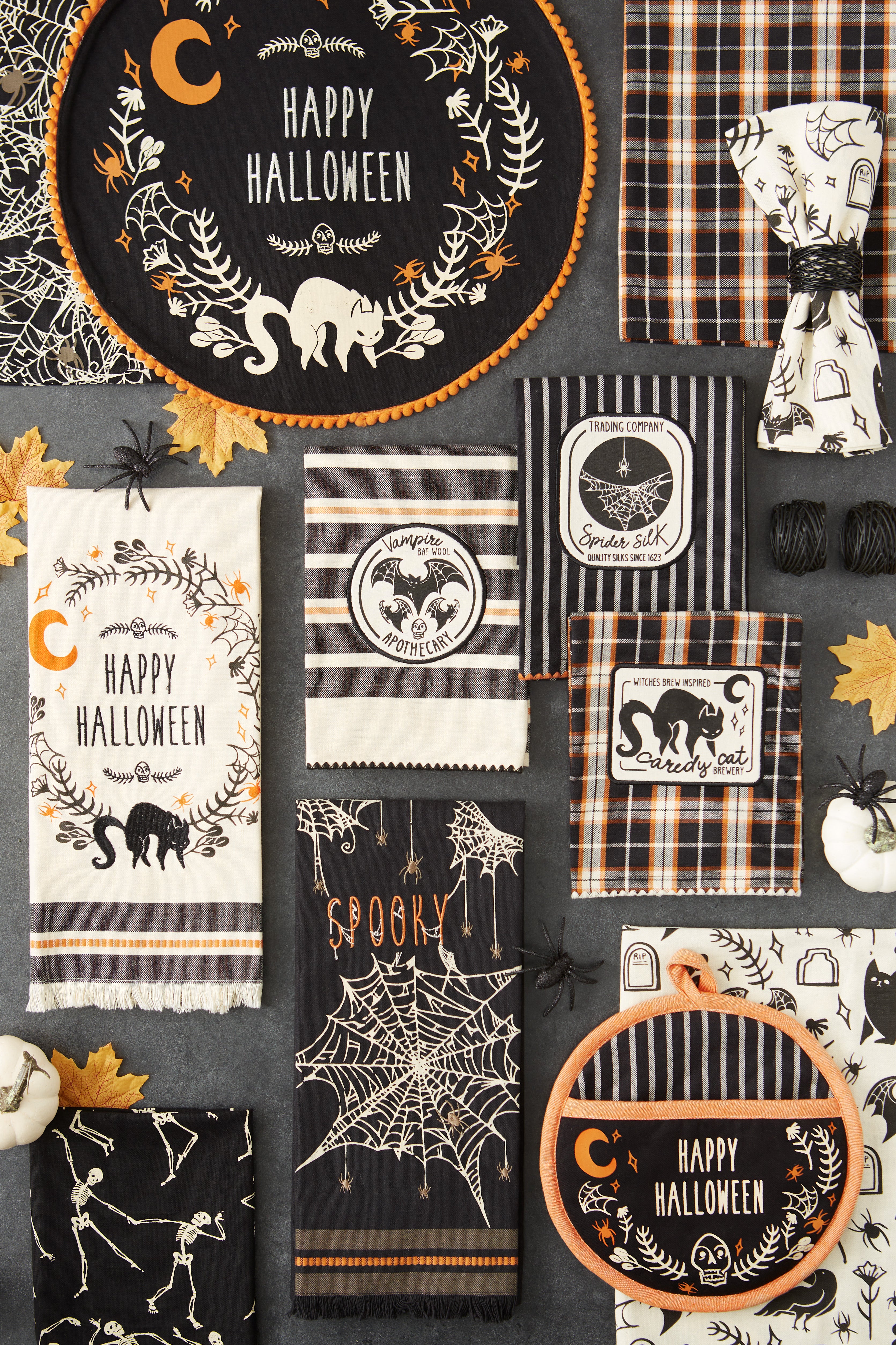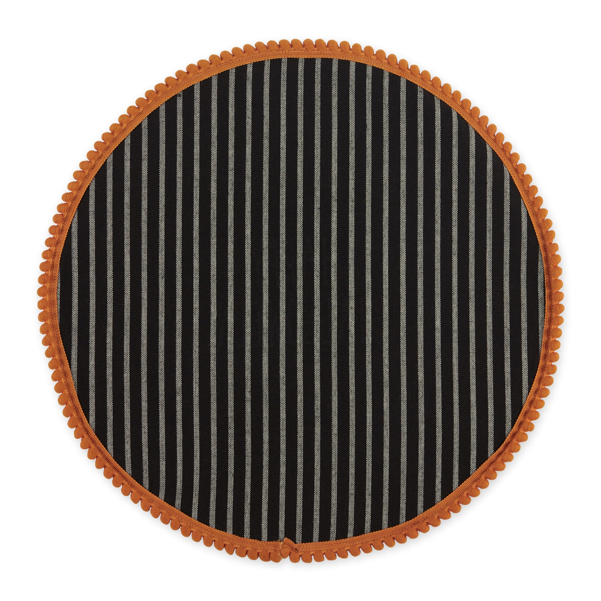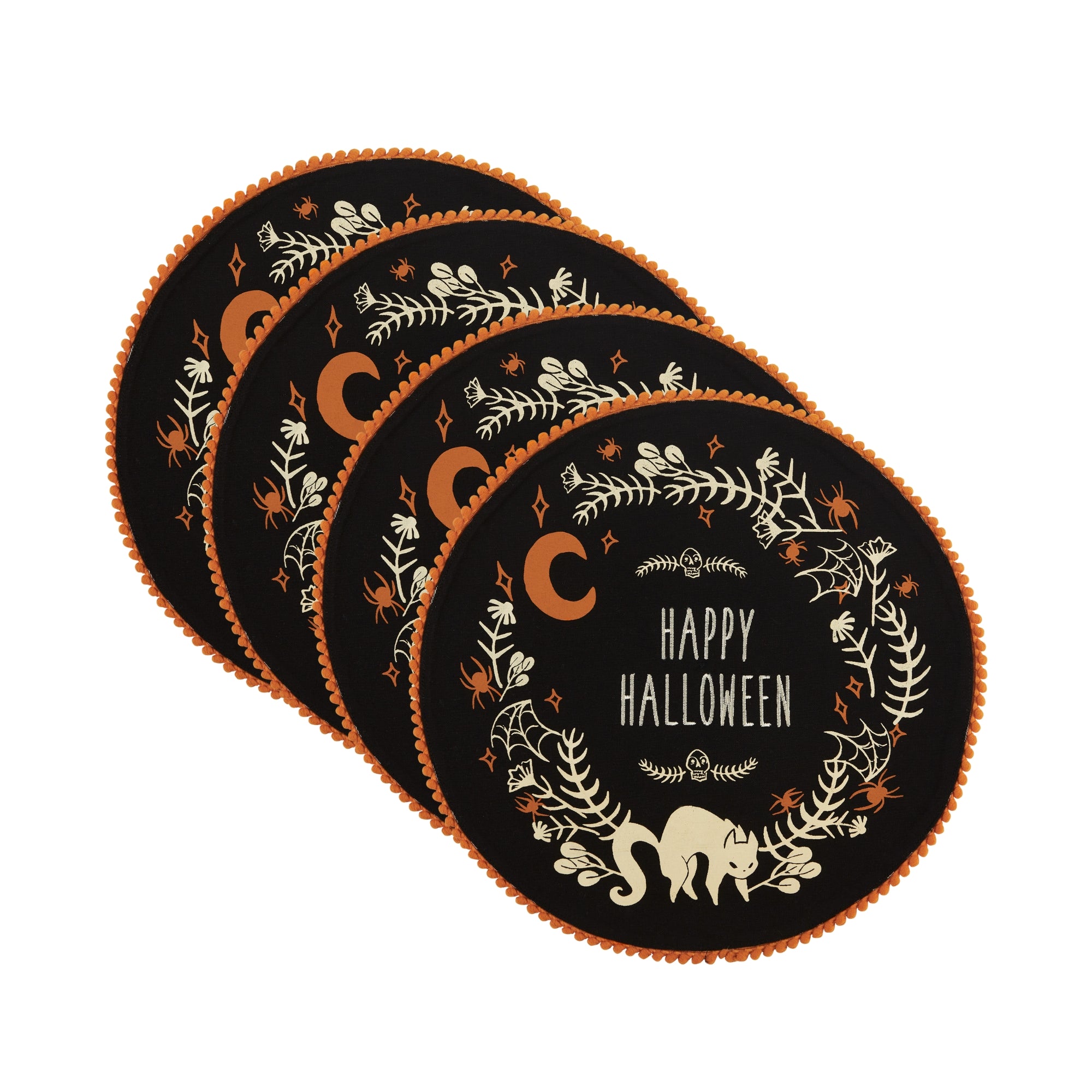 Add festive flair to your Halloween table with the Design Imports Spooky Wreath Embellished Round Placemat Set. This set of four round placemats features a bold black background adorned with a wreath of spooky motifs—perfect for adding seasonal charm to your place settings. The sturdy fabric construction helps protect your table from heat, scratches, and spills, while the embellished design adds texture and eye-catching detail. Ideal for everyday meals, Halloween parties, or spooky-themed dinners.