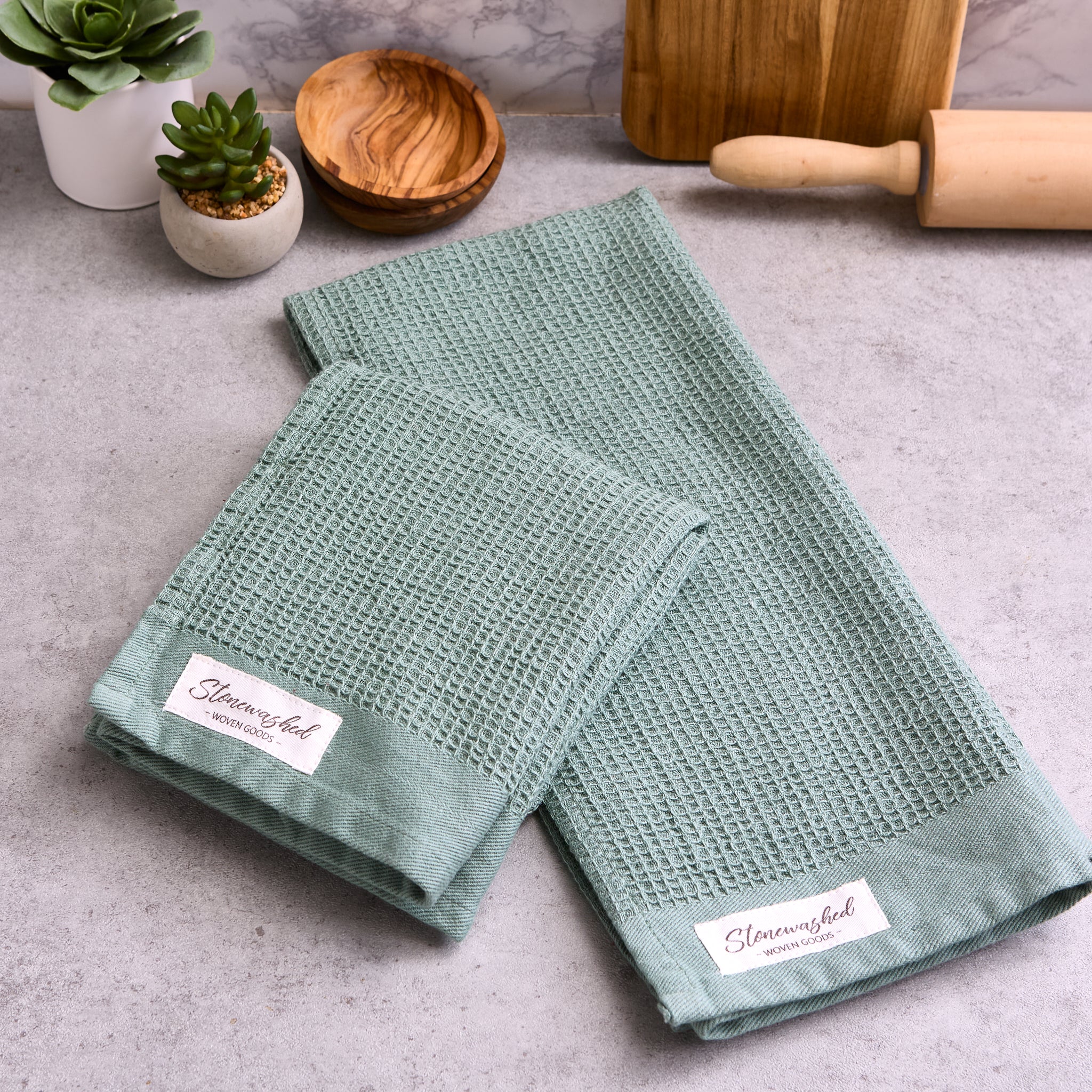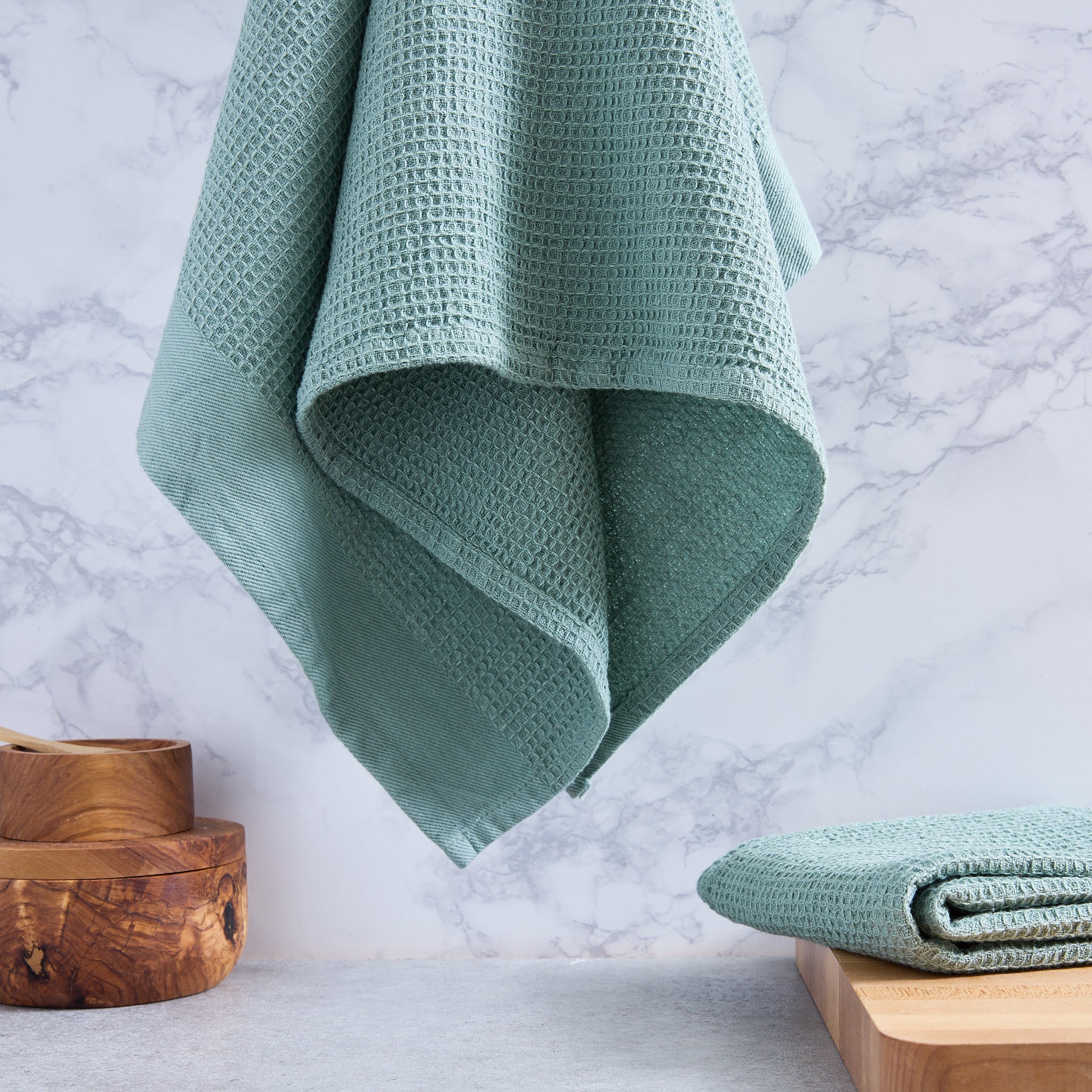 Upgrade your kitchen essentials with this Washed Waffle Dishtowel Set, designed for superior absorbency, quick drying, and everyday functionality. Each towel measures 18 x 28 inches, providing ample coverage for drying dishes, wiping countertops, and tackling spills with ease. The pre-washed waffle weave fabric offers a soft, textured feel that is gentle on hands and dishware while enhancing absorbency. Crafted from high-quality cotton, these towels dry faster than traditional dishtowels, helping to prevent mildew and odors. The raised waffle texture not only boosts drying efficiency but also provides light scrubbing power for cleaning surfaces. Durable and stylish, their modern, textured design complements any kitchen décor while delivering long-lasting performance. Easy to care for, these towels are machine washable and get softer with every wash. Whether you're drying, polishing, or cleaning, this washed waffle dishtowel set is a must-have for a fresh and functional kitchen!