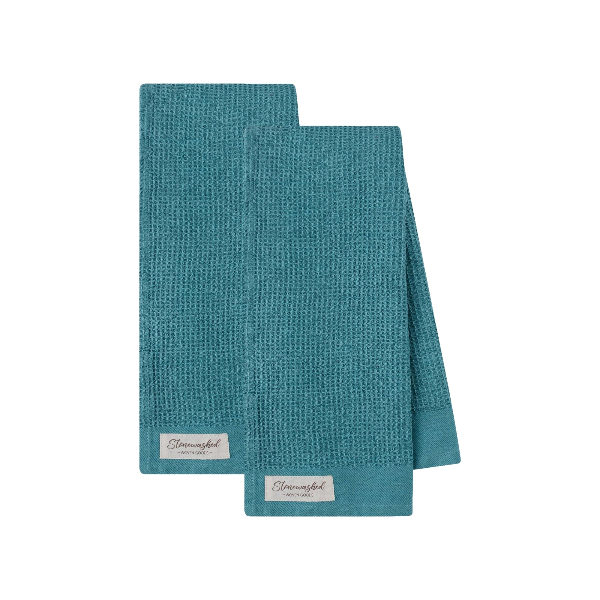 Porcelain Blue Washed Waffle Dishtowel Set of 2