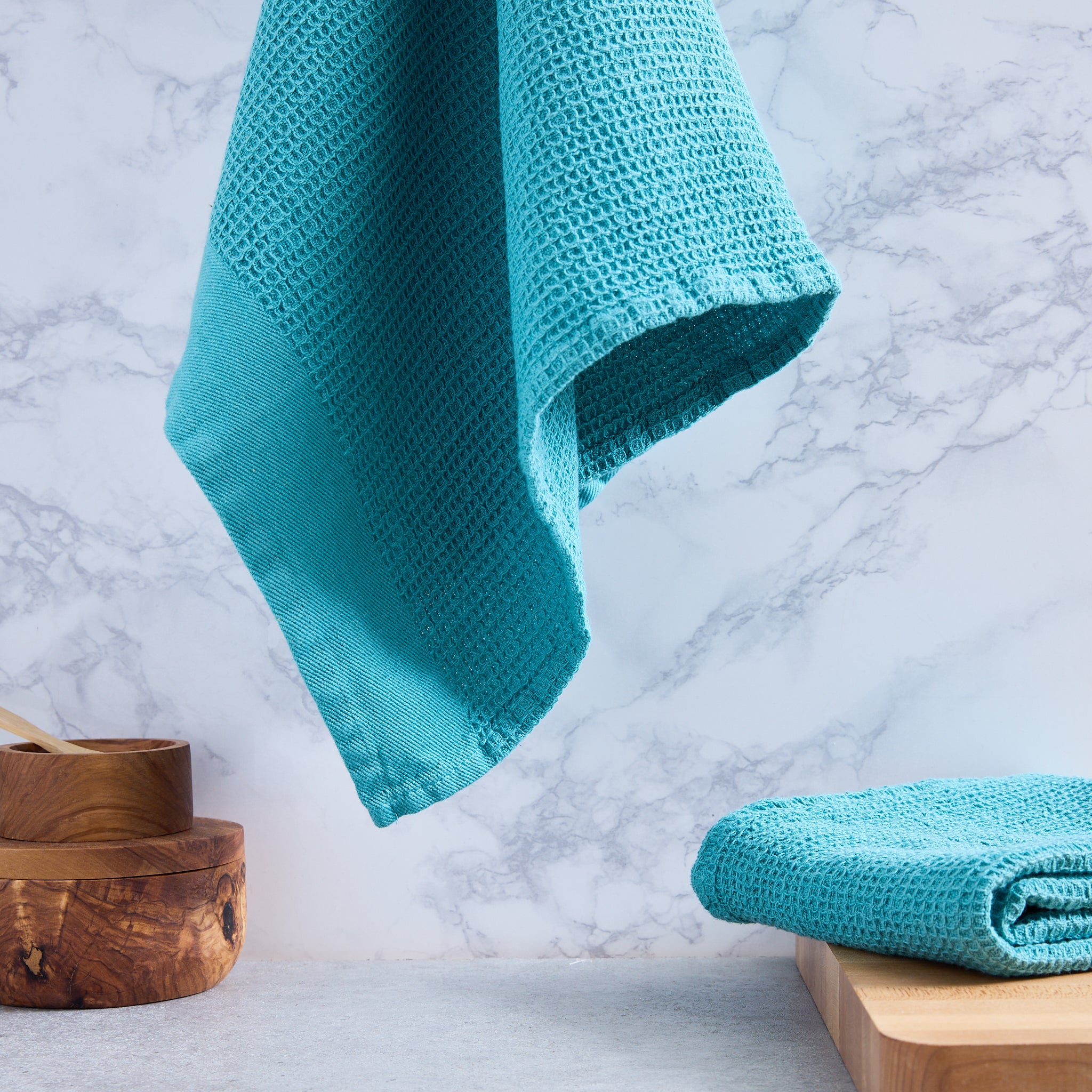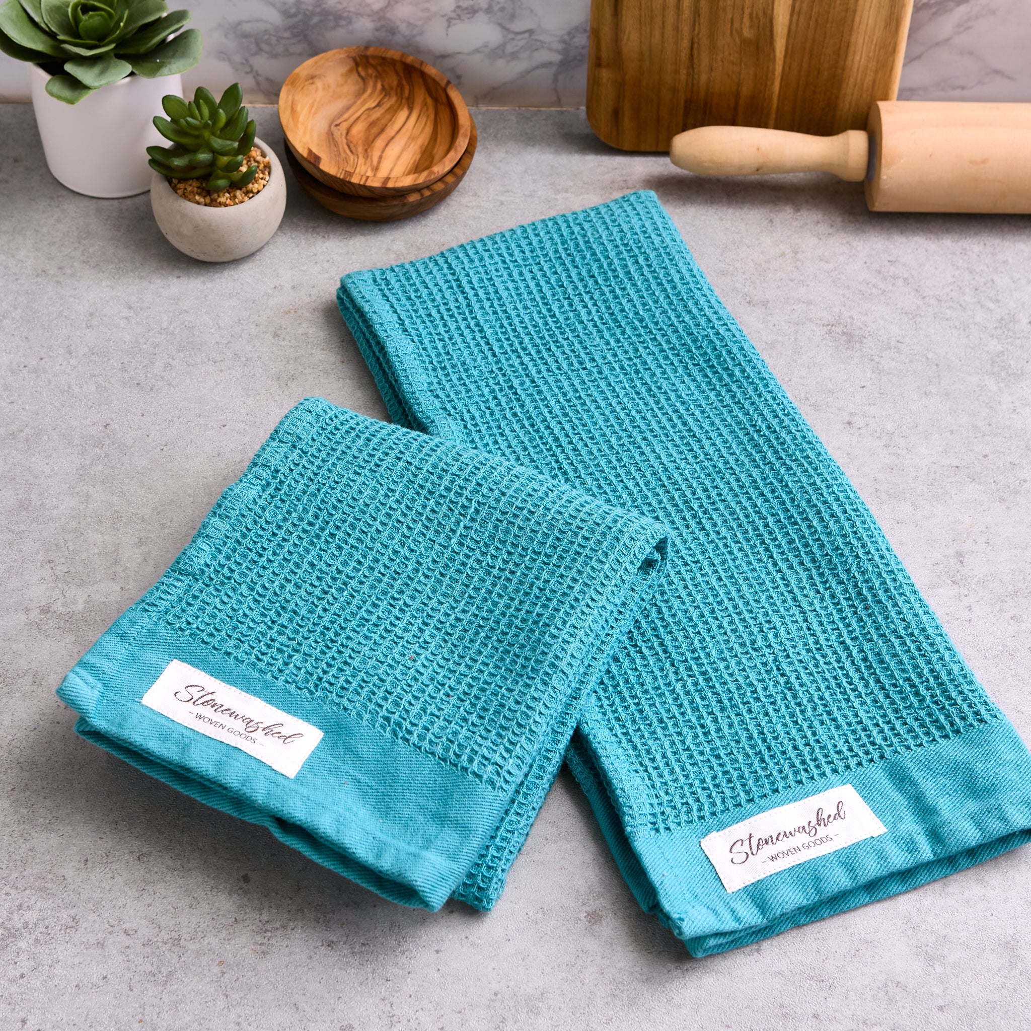 Upgrade your kitchen essentials with this Washed Waffle Dishtowel Set, designed for superior absorbency, quick drying, and everyday functionality. Each towel measures 18 x 28 inches, providing ample coverage for drying dishes, wiping countertops, and tackling spills with ease. The pre-washed waffle weave fabric offers a soft, textured feel that is gentle on hands and dishware while enhancing absorbency. Crafted from high-quality cotton, these towels dry faster than traditional dishtowels, helping to prevent mildew and odors. The raised waffle texture not only boosts drying efficiency but also provides light scrubbing power for cleaning surfaces. Durable and stylish, their modern, textured design complements any kitchen décor while delivering long-lasting performance. Easy to care for, these towels are machine washable and get softer with every wash. Whether you're drying, polishing, or cleaning, this washed waffle dishtowel set is a must-have for a fresh and functional kitchen!