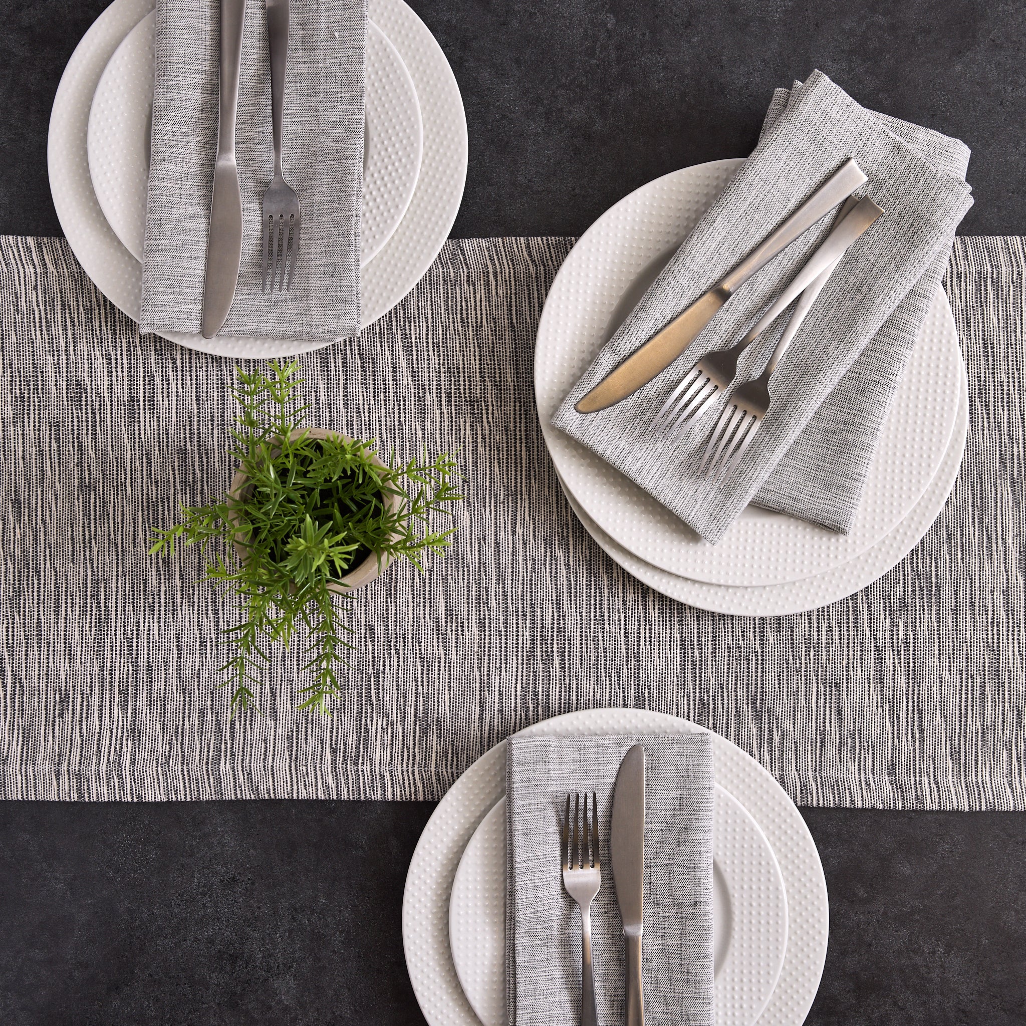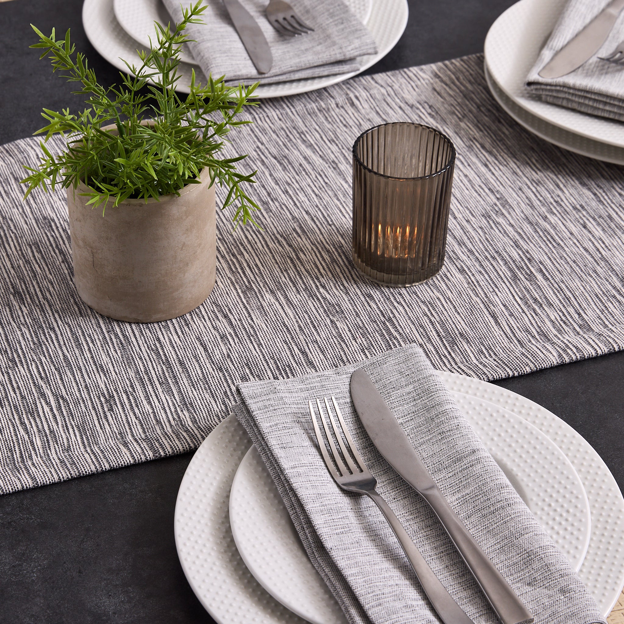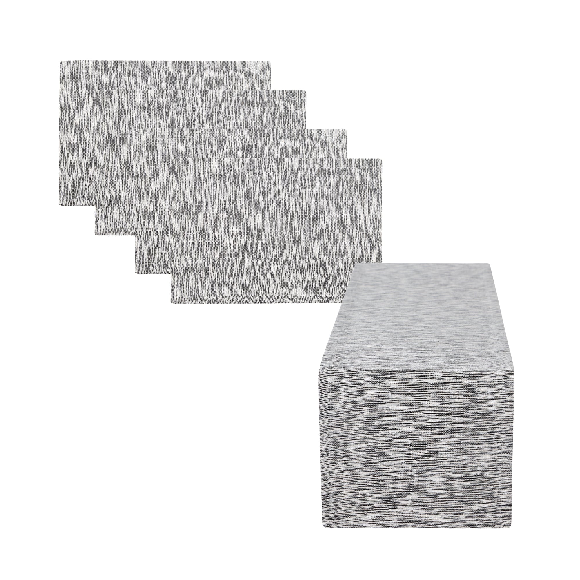 Add warmth and texture to your table with Design Imports Space Dyed Table Runner and Placemat Set. This coordinated 5-piece set includes one table runner and four matching placemats, each woven with space-dyed yarns for a softly variegated, artisan look. The subtle color variation brings depth and dimension to everyday or seasonal dining, while the woven cotton-blend construction offers durability and easy maintenance. Whether used daily or layered for special occasions, this set brings effortless charm to your tabletop.