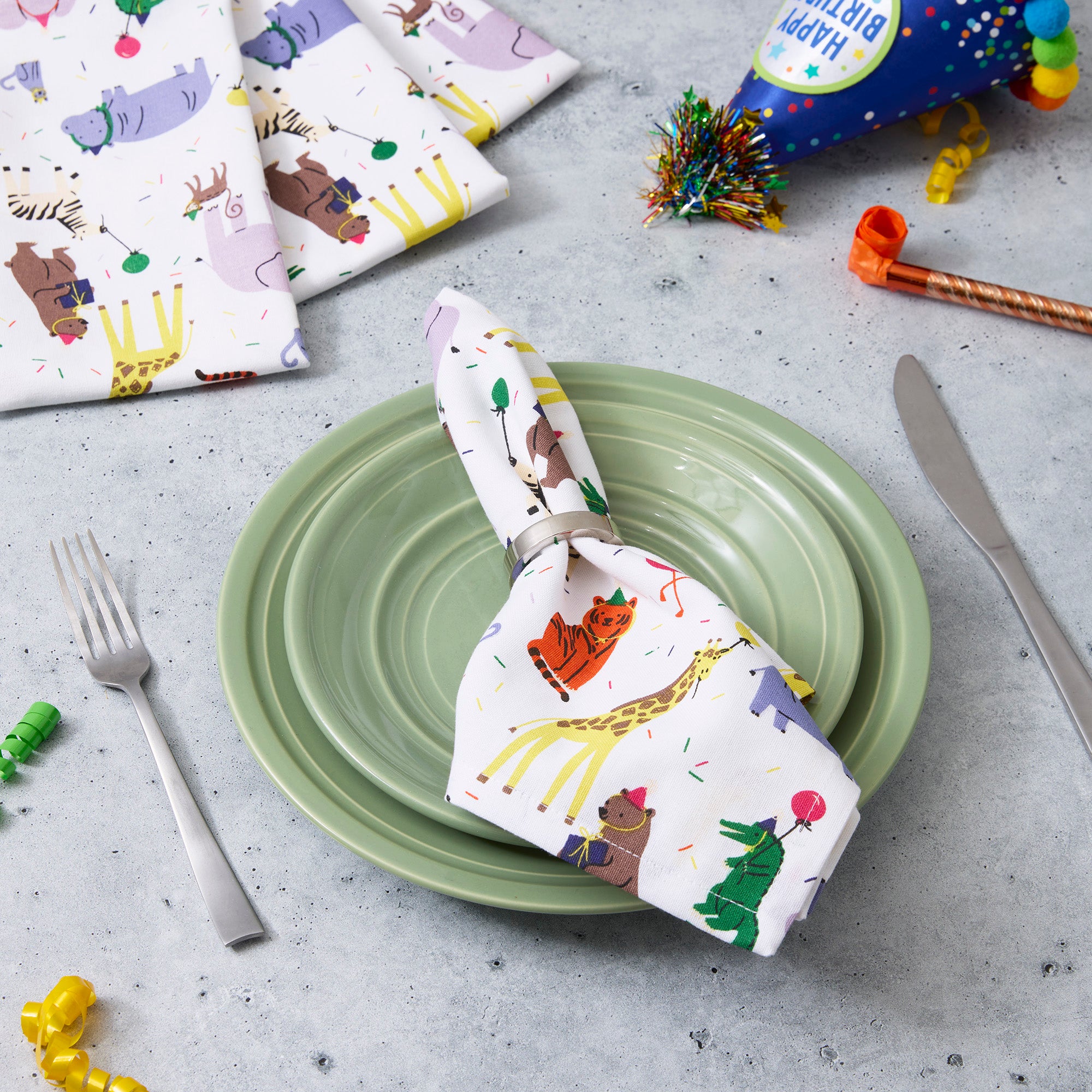 • Features a lively party animal print, complete with birthday hats and festive flair to bring joy to any celebration.