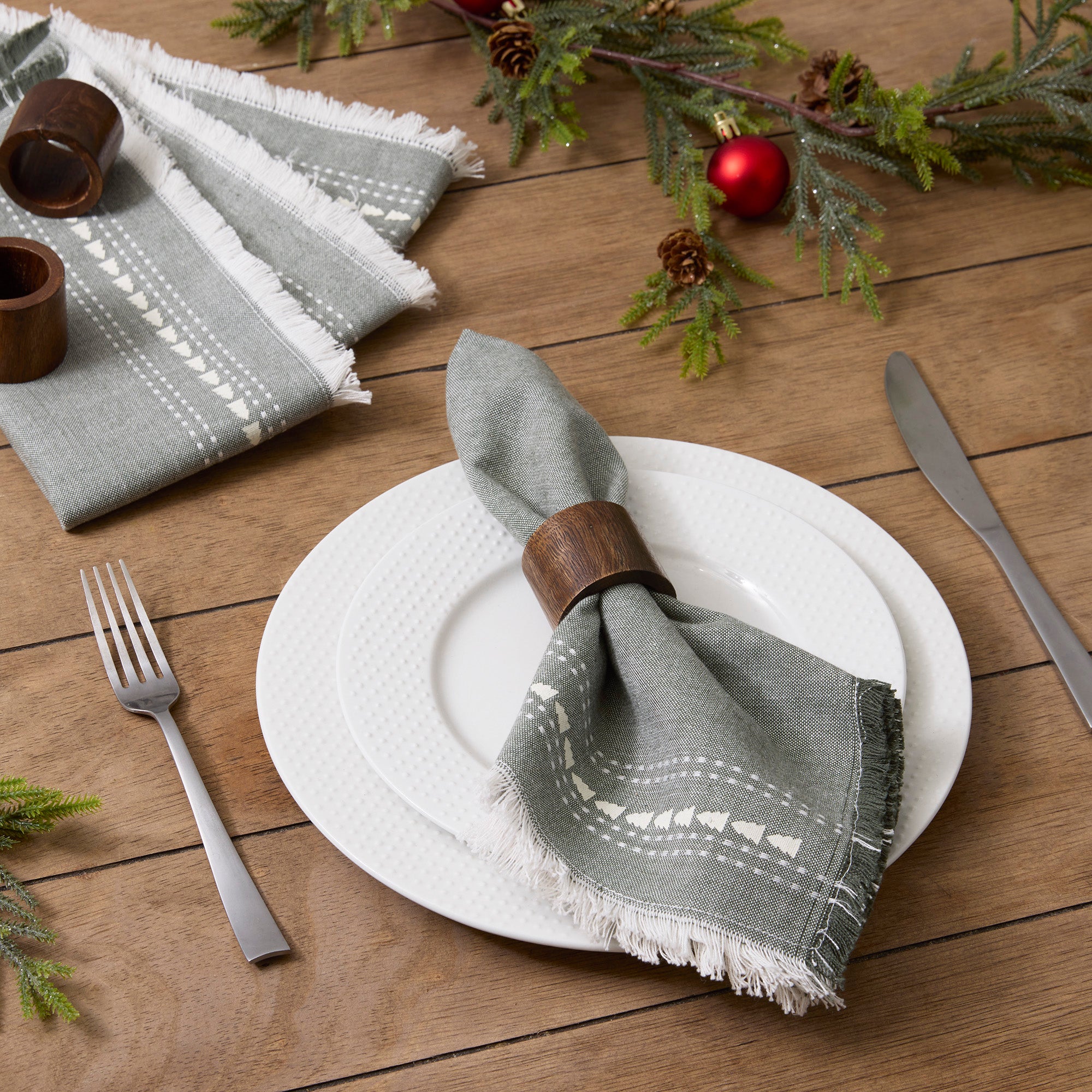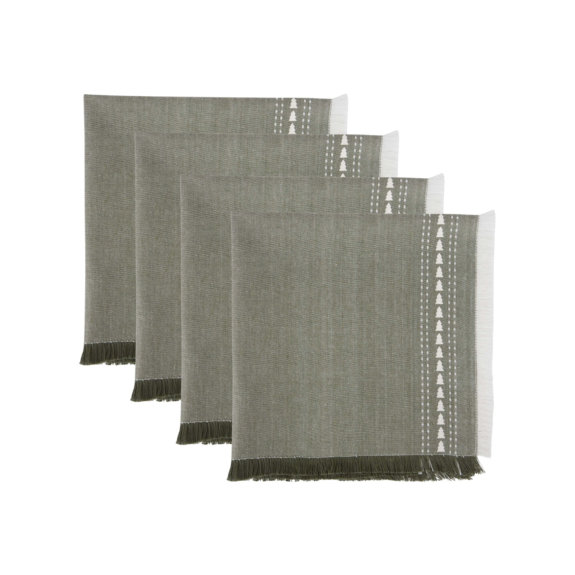 Add festive charm to your holiday table with the Design Imports Balsam Fir Tree Dobby Napkin Set. This set of four 20x20" cotton napkins features a repeating holiday tree and dobby stripes, perfect for Christmas dinners, seasonal gatherings, or winter brunches. Durable yet soft, each napkin is finished with a 1/2-inch fringe on four sides. Machine washable and reusable, they’re a sustainable alternative to disposable napkins—ideal for adding both function and cheer to your holiday entertaining.