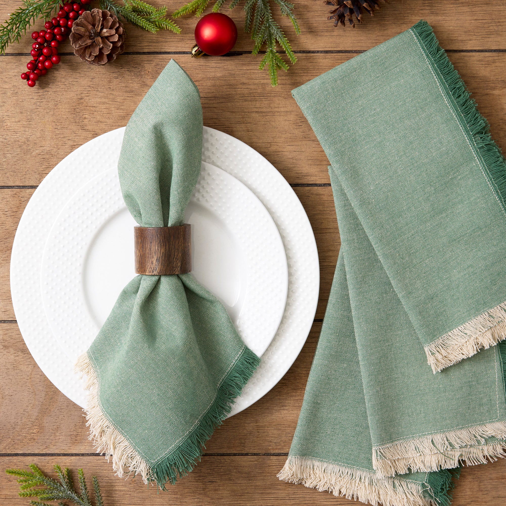 Add casual elegance to your everyday dining with the Design Imports Cotton Chambray Napkin Set. This set of four 20x20" cloth napkins is crafted from soft, durable cotton chambray and finished with decorative fringe for a relaxed, stylish touch. Perfect for daily meals, family gatherings, or casual entertaining, these reusable napkins offer an eco-friendly alternative to paper while elevating your table with texture and charm. Machine washable for easy care, they’re a practical staple you’ll reach for again and again.